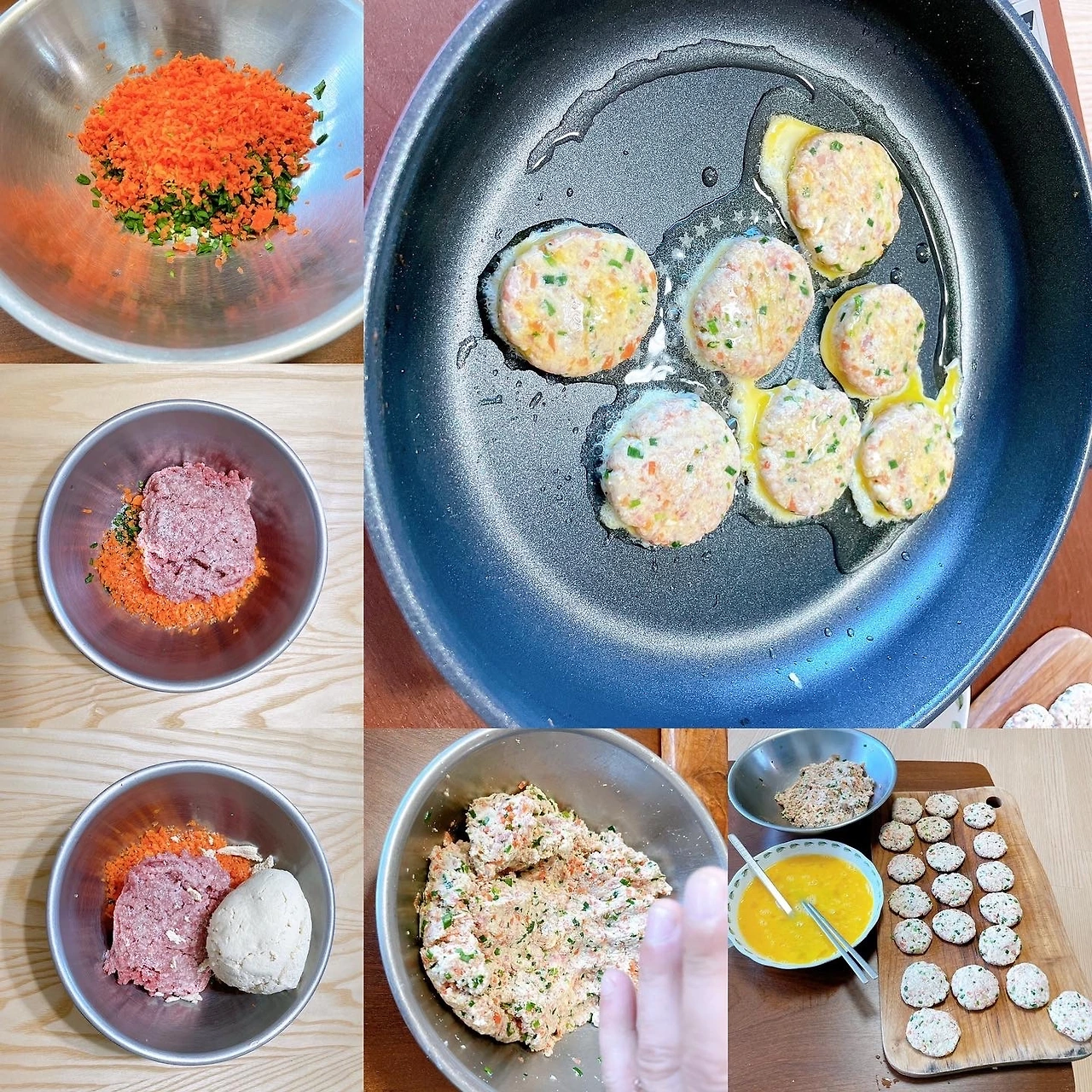 엄마가 하는 동그랑땡과는 완전히 다른 스타일이다. 두부와 다진 고기를 넣어서 작게 빚어서 하나씩 기름에 부쳤다. 내가 여태 먹어본 엄마표와 다르고 냉동식품으로 사 먹던 것과는 조금 비슷했다, 확실히 수제라 맛있었다.