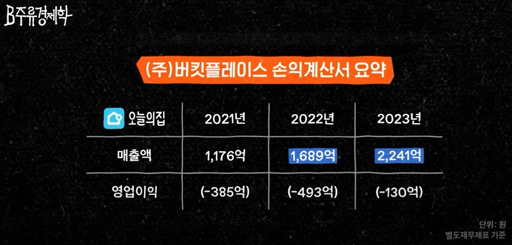 이번 글에서 다룰 것은 3번, 오늘의집 매출은 왜 이렇게 높아졌을까? 하는 부분이다. 이번 편에서 '오늘의집' 매출 변화에 대해 흥미로운 내용을 확인할 수 있었다. 아래는 오늘의집 손익계산서 요약 내용이다.