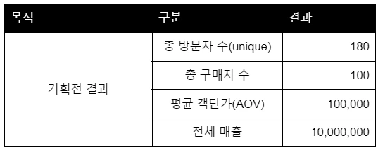 (사례1) 100만원 광고 비용을 들여 100명 유입, 100명 중 10명 첫구매 고객 발생