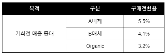 ※Organic 구매전환율, 총 방문자 수는 GA4 혹은 MMP(앱스플라이어, 애드브릭스 등) 데이터를 참고합니다.