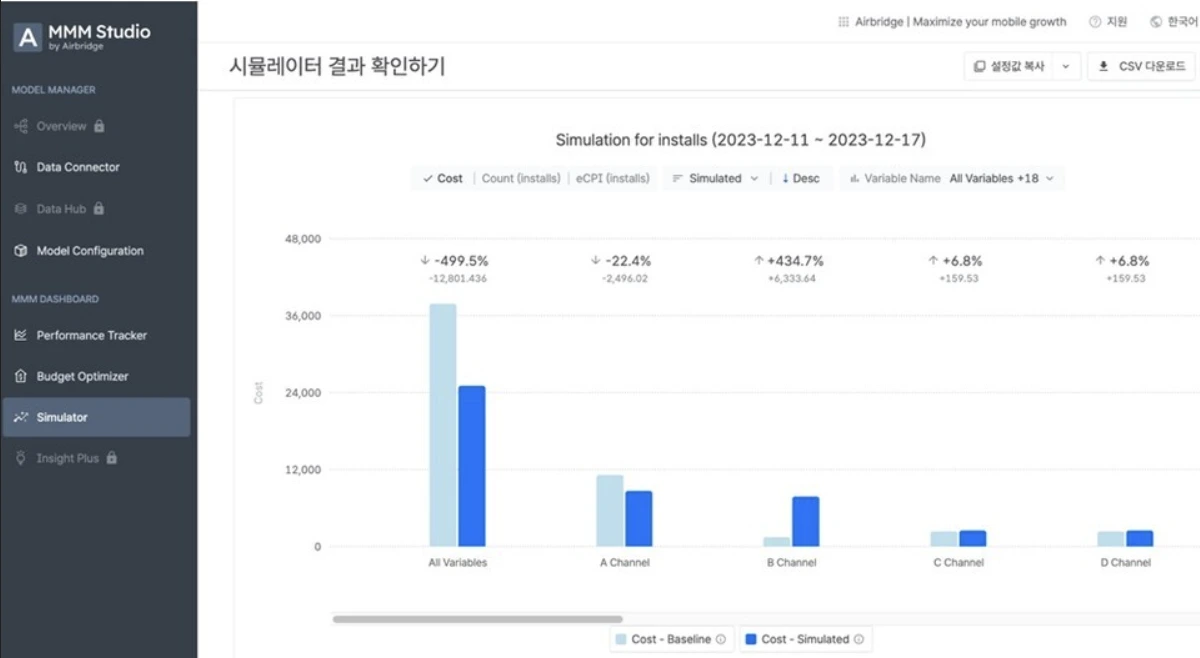 그러나 AB180에서 제공하는 모델링이 메타/구글 대비 얼마나 고도화되어 있을지 알 수 없으며 AB180 MMM은 "패키지 형태"가 아닌 "솔루션 서비스"로 제공하기에 구글/메타와 같이 원하는 대로 커스터마이징 하는 건 어렵다.(내부 데이터팀이 따로 없다면 이용해 볼 만할 수도...)