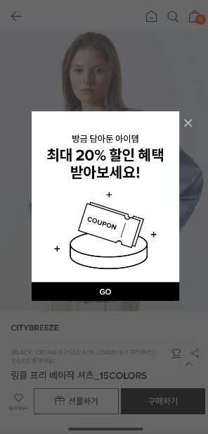 여기에 위의 에이블리 사례처럼 재방문 시 장바구니에 "지금 구매하면 ~원 아낄 수 있어요."로 살짝 노티 하는 것도 쇼핑에 크게 저해되지 않으면서 구매를 유도하는 방법이 될 수 있을 것 같다.