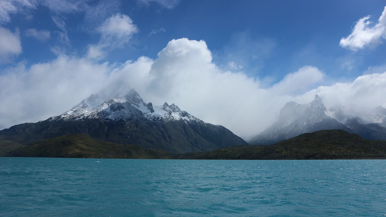 마젤란 펭귄을 보고 나서는 바로 토레스 델 파이네로 향했다. 토레스 델 파이네는 등산복 브랜드로도 유명한 ‘파타고니아’라는 이름의 지역에 위치한 산지로, ’푸른 탑’이라는 뜻을 가지고 있다. 그 이름 그대로, 토레스 델 파이네에는 만년설이 쌓인 푸른 산봉우리들이 탑처럼 높이 솟아 있다. 뿐만 아니라 산지 주변에는 빙하가 있어서, 빙하에서 흘러내린 물이 모여 소다처럼 투명하고 푸른 호수를 만들었다.