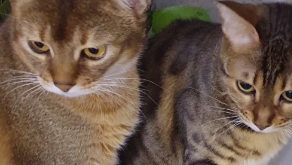 고양이를 키우나 봐. 정말 귀엽다. 두 마리를 키우나 보네. 나도 고양이 두 마리 키우는데.