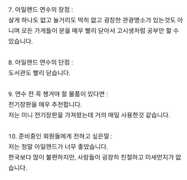 마지막으로, 내가 아일랜드를 출발하기 전 카페에서 후기 등을 찾다가 나온 글인데, 가장 나의 각오를 다지게 만드는 글이였다. ㅋㅋ