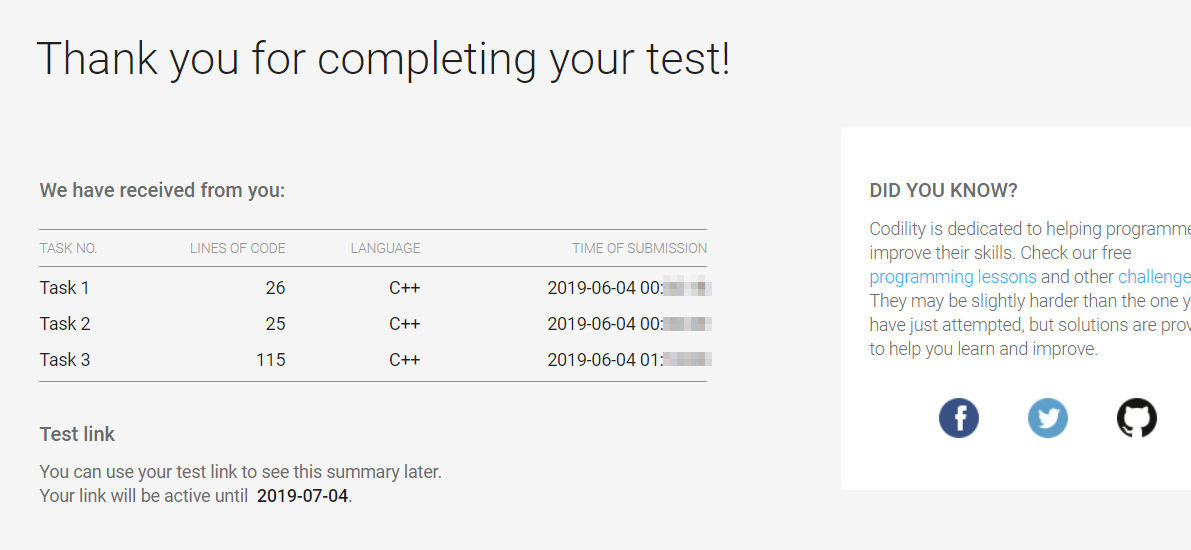 그런데 결과가 다 맞았다고 해당 스텝을 통과한 건 아니다. Codility라는 플랫폼을 쓰던데, 이걸 통해서 매니저가 내 풀이과정을 초단위로 돌려볼 수 있다. ㄷㄷ
