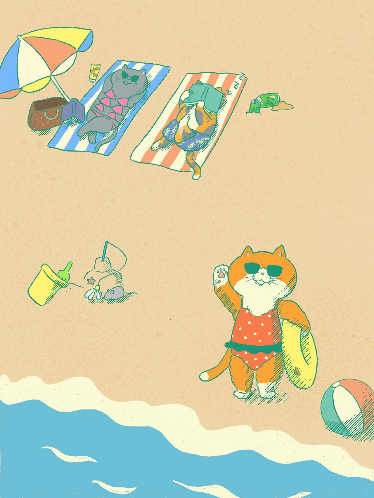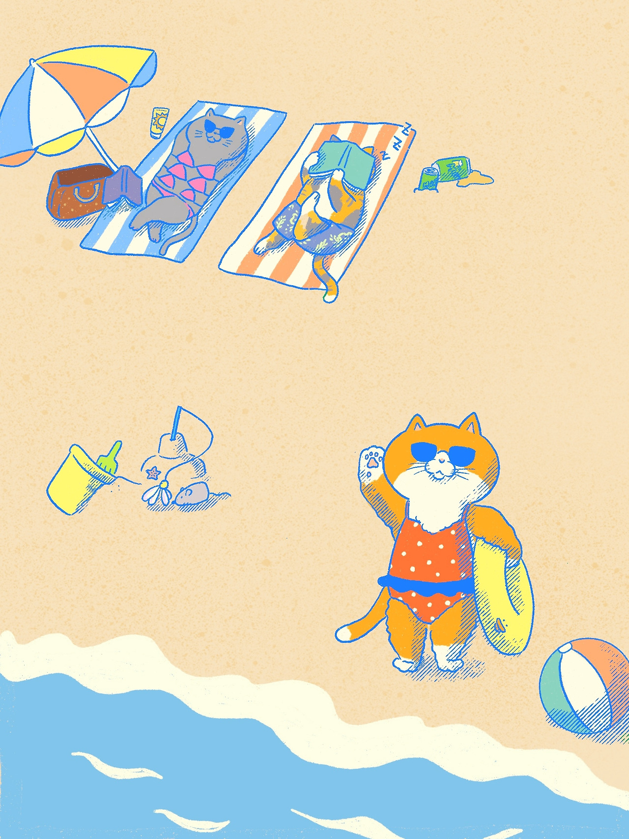 배경이라도 휴가 느낌을 내보자 싶어 만든 해변의 고양이