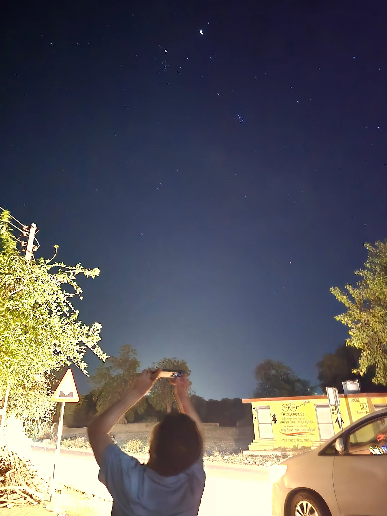 그런데 Mehasana에서 10분 정도 걸을 수 있는 길이 존재한다고 했다. 버스정류장 근처였다. 우리 가족은 10분을 걷기 위해 30분간 차를 타고 비포장도로를 달렸다. 시골길을 달리는 터라 주변에 보이는 건 캄캄한 어둠뿐이었다. 나도 모르게 하늘을 쳐다보고 소리를 질렀다.