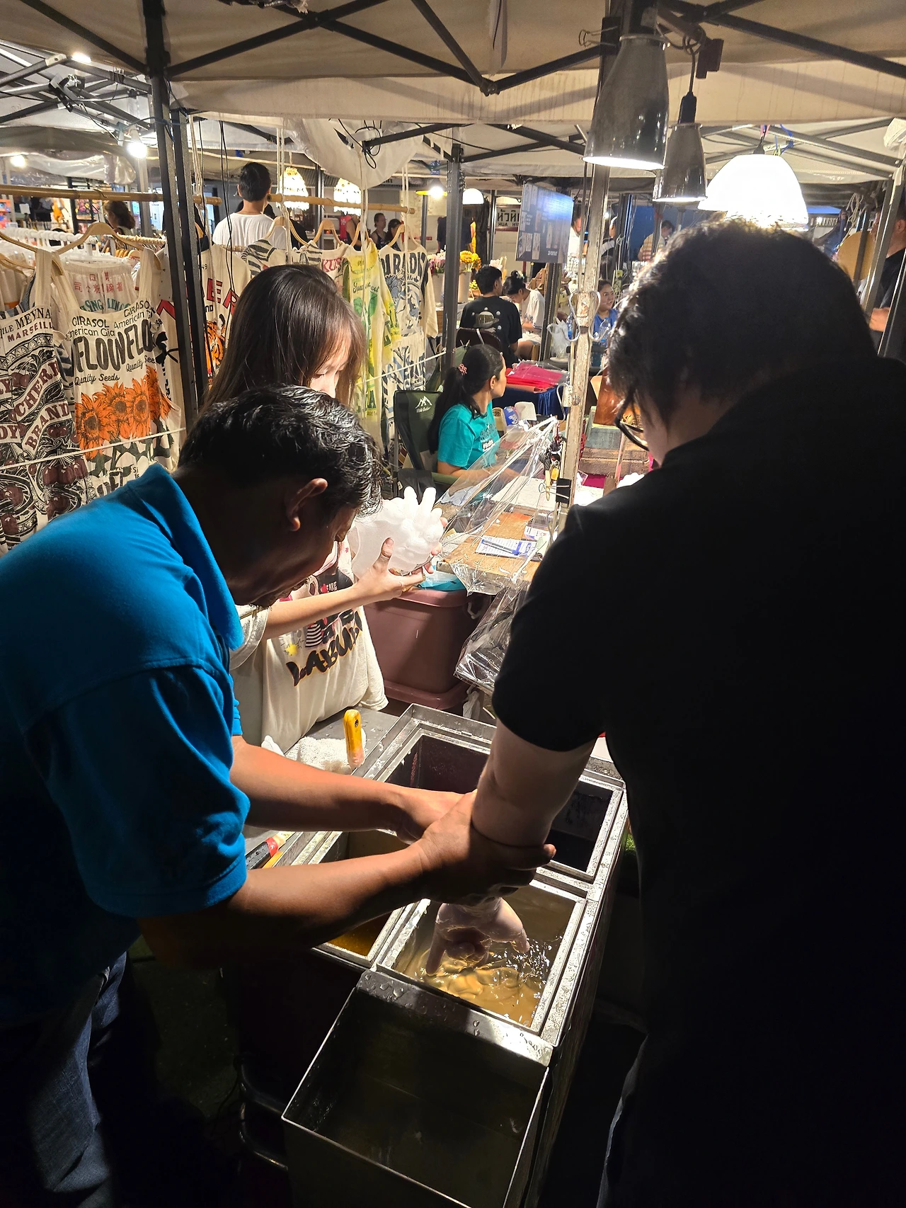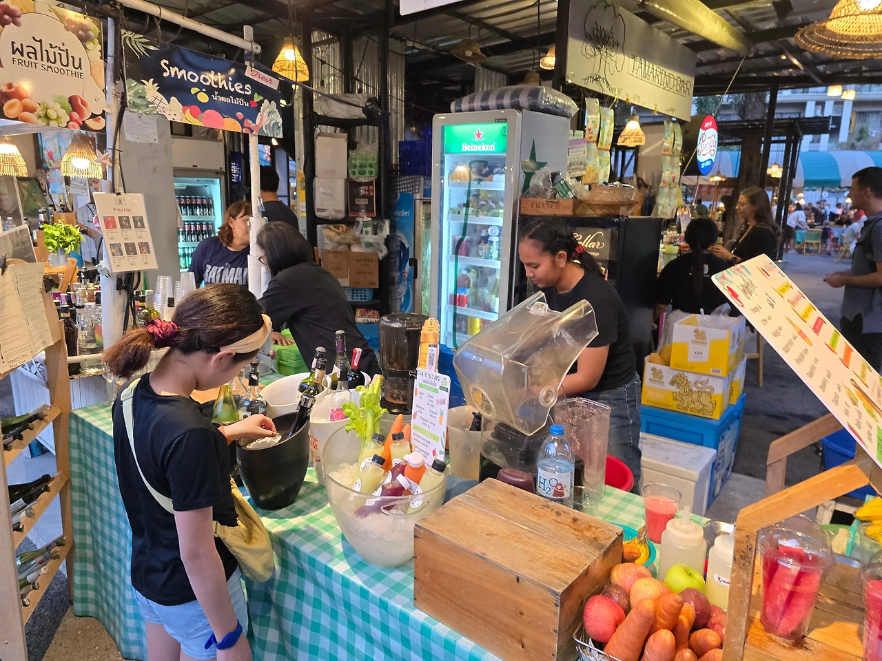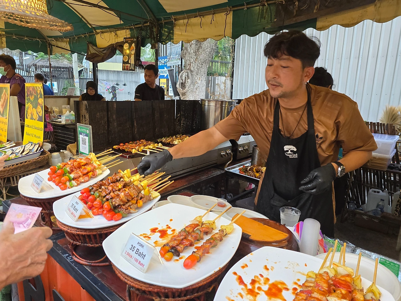 나는 지갑에서 1000밧을 꺼내 주면서 각자 먹고 싶은 걸 사서 애들이 앉아 있는 테이블에서 만나자고 했다.