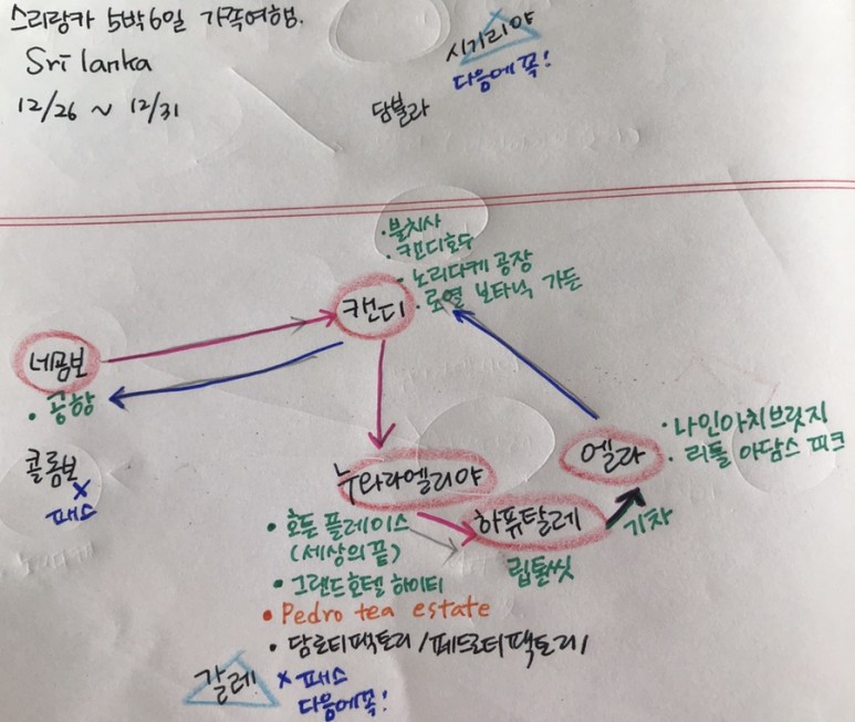 2018년 연말이다. 연말을 집안에서만 보내고 싶지는 않아서, 남인도에서 가장 가까운 나라인 '스리랑카'에 대해 알아보았다. '몰디브'도 있었지만 이미 다녀왔고, 몰디브에선 할 수 있는 게 별로 없어서 지겨웠다. 스리랑카는 깨끗한 인도라길래, 어린 두 아이가 먹을 수 있는 건 마땅치 않겠다는 판단이 들었다. 그래서 구할 수 있는 한국 음식을 최대한 구해서 캐리어에 담았다. 큰 캐리어 두 개, 두 아이를 데리고 5박 6일 스리랑카로 떠났다.