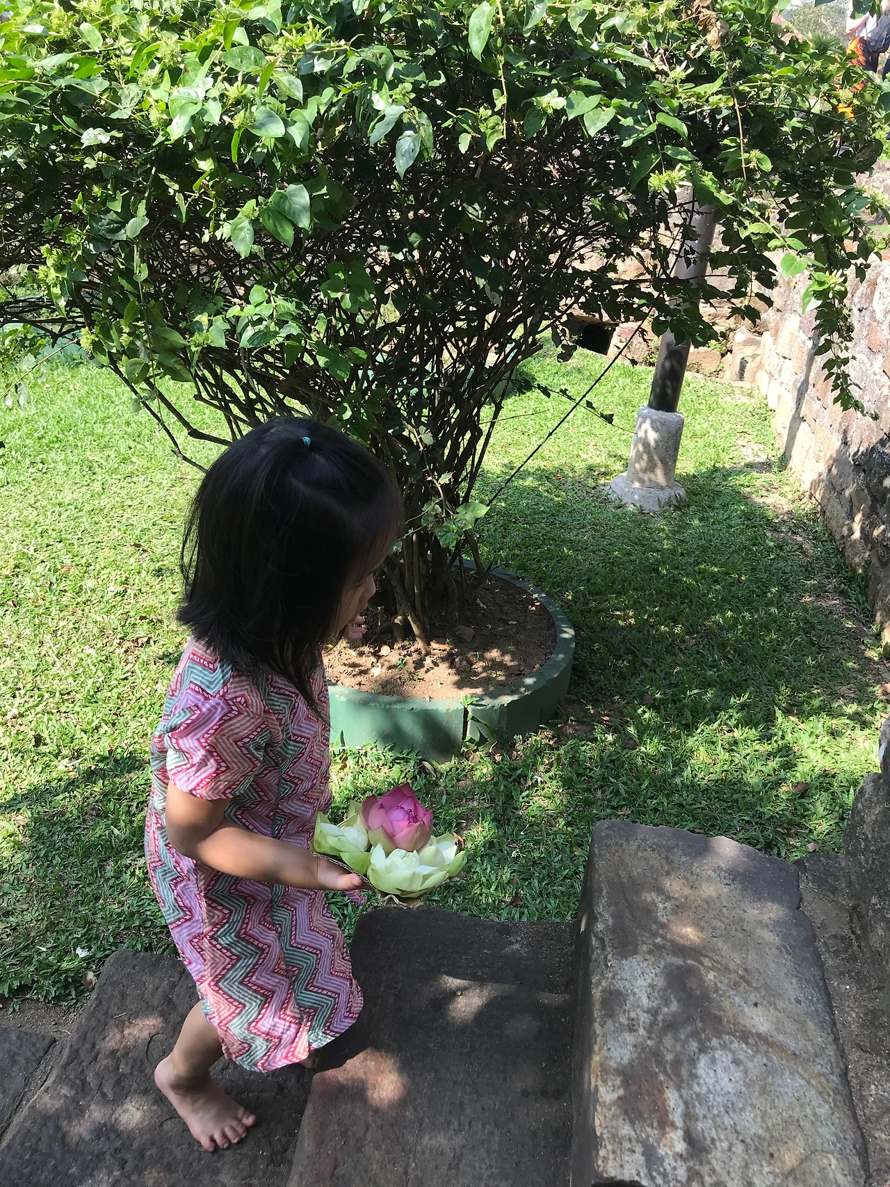 다음날 아침, 캔디에 있는 불치사를 찾았다. 스리랑카는 불교국가라, 더 친근감이 들었던 건 아닐까 싶다. 우리는 불상에 꽃을 공양하기 위해서 꽃을 구매하고 사람들을 따라 불교사원에 들어갔다. 아이는 자신의 손에 고이 연꽃을 올려두고, 조심스럽게 잘도 걸었다.