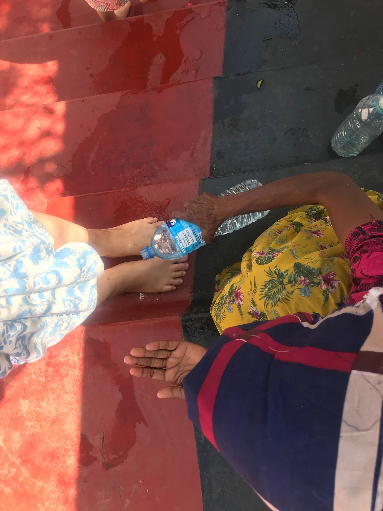 인도의 힌두교 사원에서와 마찬가지로 이곳도 맨발로 다녀야만 한다. 아이들은 맨발이 되는 순간 더 자유로움을 느끼는 것 같다. 인도에서 맨발로 살았던 시간이 제법 있어서일까, 어딜 가든 신발을 벗는 행위는 아이의 무의식에 남아 있는 듯하다. (가령, 식당에 가면 좌식이 아닌데도 신발을 벗고 밥을 먹는다든가...)