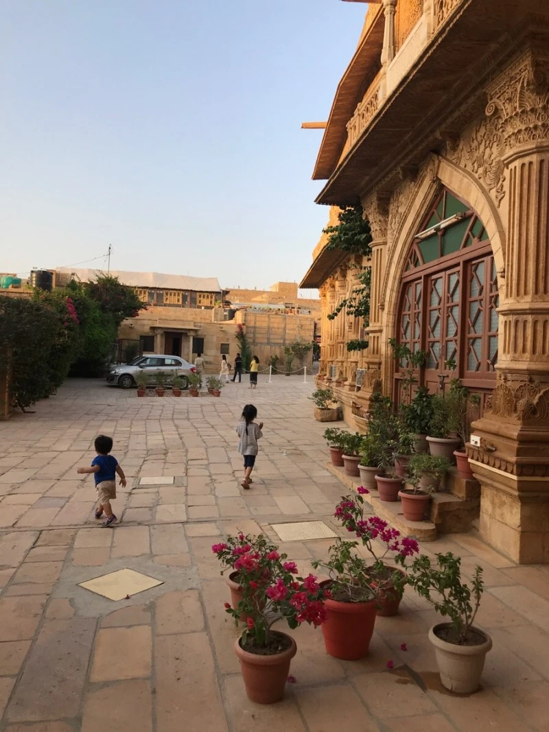 아직도 잊을 수 없는 만디르 팰리스 호텔. 꽤나 오래된 건물을 있는 그대로 사용하고 있었는데, 외관과 내부가 아름다웠다. 골드 시티란 이름을 가진 자이살메르의 느낌처럼 이 숙소도 온통 모래빛이었다. 직원들은 친절했으며, 아이들을 향해 미소를 지어주었다. 심지어 둘째가 귀엽다고 계속 안아주기도 했다. 그런데, 그런데 말이다. 모든 좋은 점을 상쇄하고도 남을 사건이 하나 있었으니, 그건 바로 화장실에서 있었던 일.......