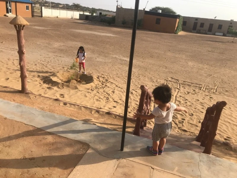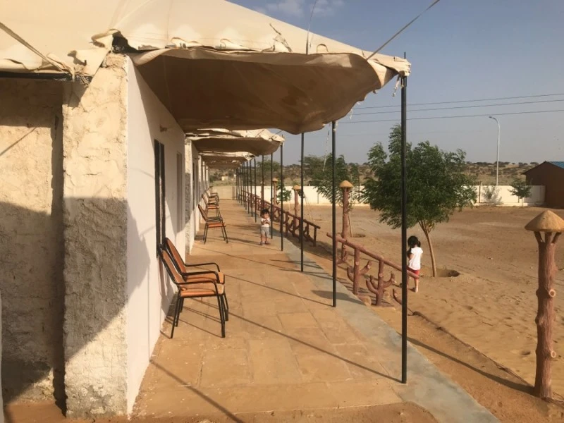 우리를 기다리고 있던 릭샤꾼에게 고마워서 팁을 얹어주고, 숙소로 돌아왔다. 체크아웃하고, 미리 예약해둔 차를 타고 사막을 향해 출발! 남편은 아고다에서 골든 캠프를 예약해두었다. 사막에서의 하룻밤이 몹시 기대되었다. 그런데 이게 웬일인가. 한참을 달려 도착한 골든 캠프의 분위기가 심상치 않았다. 건물이 공사중이었던 거다. 그곳의 매니저를 통해 알아보니, 비수기라 영업을 하지 않는다고 했고, 아고다 측에서는 이미 숙박비를 받아갔다. 그런데 환불처리가 안 된다는 거다. 대신 자기들이 운영하는 다른 숙소에 묵게 해주겠다고 했다. 우리가 예상한 숙소와는 차이가 많이 나는 곳이었지만, 그렇다고 노숙할 수는 없는 노릇이라 매니저가 알려준 숙소로 이동했다.