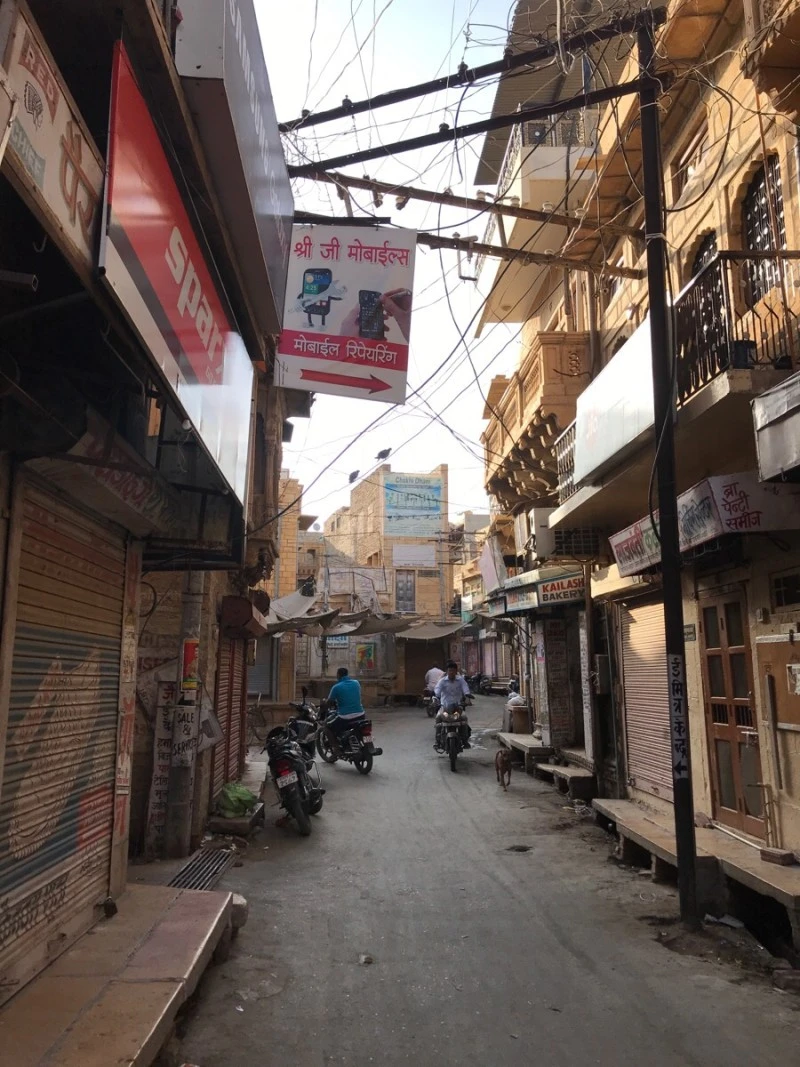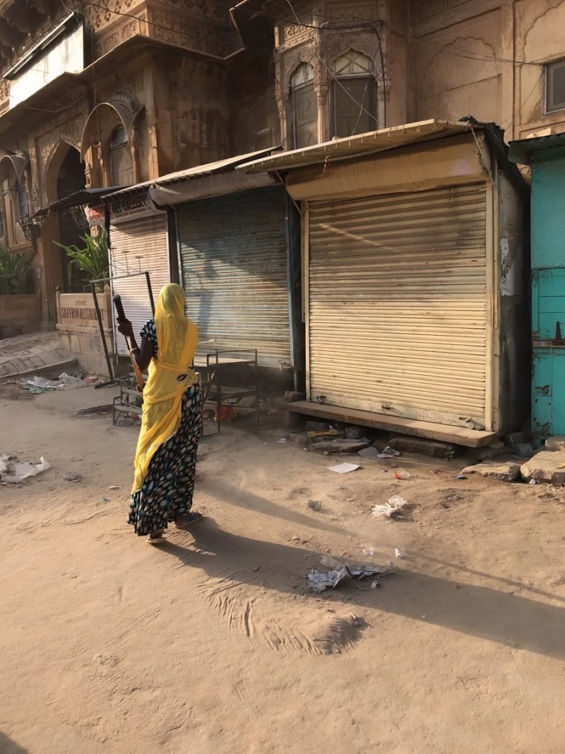 그날 밤, 나는 새까만 개미들이 호텔 방안을 줄지어 나오는 꿈을 꿨다. 내 온몸에 개미들이 기어가는 상상으로 괴로웠다. 소름이 끼쳤다. 자이살메르 최악이야! 라고 생각할 뻔했다. 하지만 개미가 나오는 화장실을 빼곤 모든 게 마음에 들었다. 이른 아침, 조식을 먹고 숙소 근처를 나와서 걸었다. 이른 시간이라 가게는 아직 문을 열기 전이었으나, 부지런한 자이살메르 사람들은 바닥을 빗질 중이었다. 고요한 아침 공기 속에서 흙냄새가 났다. 오로지 빗질 소리만 거리를 에워쌌다. 저렇게 열심히 쓸어서, 자이살메르의 골목이 깨끗한 거였구나. 바라나시의 더러운 골목과 비교되었다.