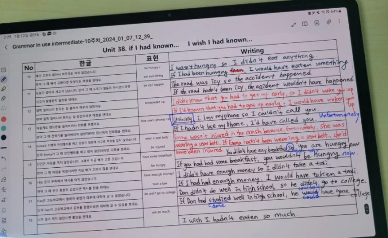 신문 기사 하나를 읽고, 낭독하고, 뒤에 있는 문제 풀고, 또 기사 관련된 쓰기도 하고. 처음에는 꽤 많은 시간과 공이 들었는데, 이것도 시간이 흐르니 좀 수월해졌다.