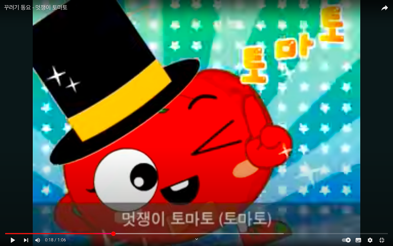 그때 부르게 된 노래가 '멋쟁이 토마토'다. 왜 하필 멋쟁이 토마토인지는 기억나지 않는다. 다만 기억나는건, 그 시절엔 다같이 교실 모니터로 플래시 영상을 틀어놓고(플래시라는 말이 아직도 있을까?) 노래를 신나게 따라부르는게 수업이 끝난 후 보상이었다. 가장 인기있었던 곡은 '바람처럼 스쳐가는~' 으로 시작하는 야인시대 노래였으나, 그 노래를 시 대회에서 부르기엔 너무 야만적이었음으로 공동의 두번째 최애곡인 멋쟁이 토마토로 정했던 기억이 살풋 난다.