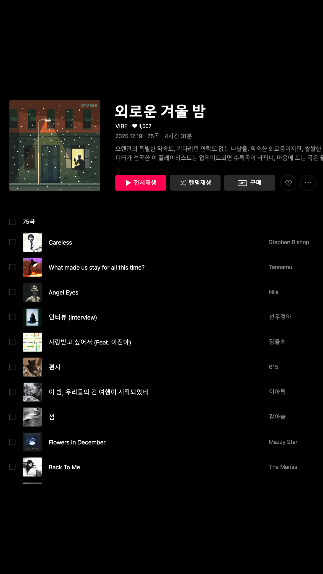 올해 네이버 VIBE와 Spotify 공식 플레이리스트에 내 곡이 올라갔다는 사실은 꽤 감격스럽다. 불과 2년 전만 해도 내 플레이 수는 그토록 선명한 '0'이 아니었던가.