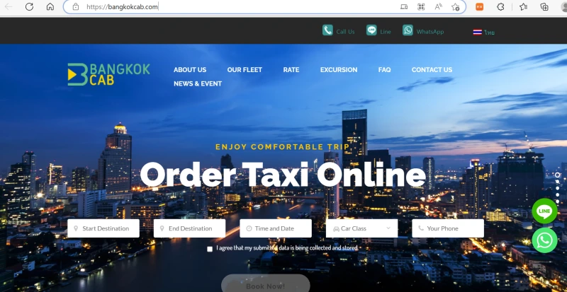 ‘방콕 캡’이라는 웹사이트 검색을 통하여, SUV 왕복 4,000 THB(약 150,000 원)로 예약을 했다.