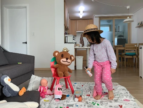 “우와~ 물고기 많다!” “아싸 한 마리 잡았다~” “어어, 놓쳤다 아쉽네” 등 실감 나는 액션과 찰떡같은 멘트, 아이가 기대하는 이 일련의 과정을 나는 모두 생략해버린 것이다. 아이는 실망한 눈치였지만 그래도 다시 또 물고기를 잡자고 바구니를 비워냈다. 아이는 한 시간이 넘도록 역할놀이에 몰입하고 있었다.