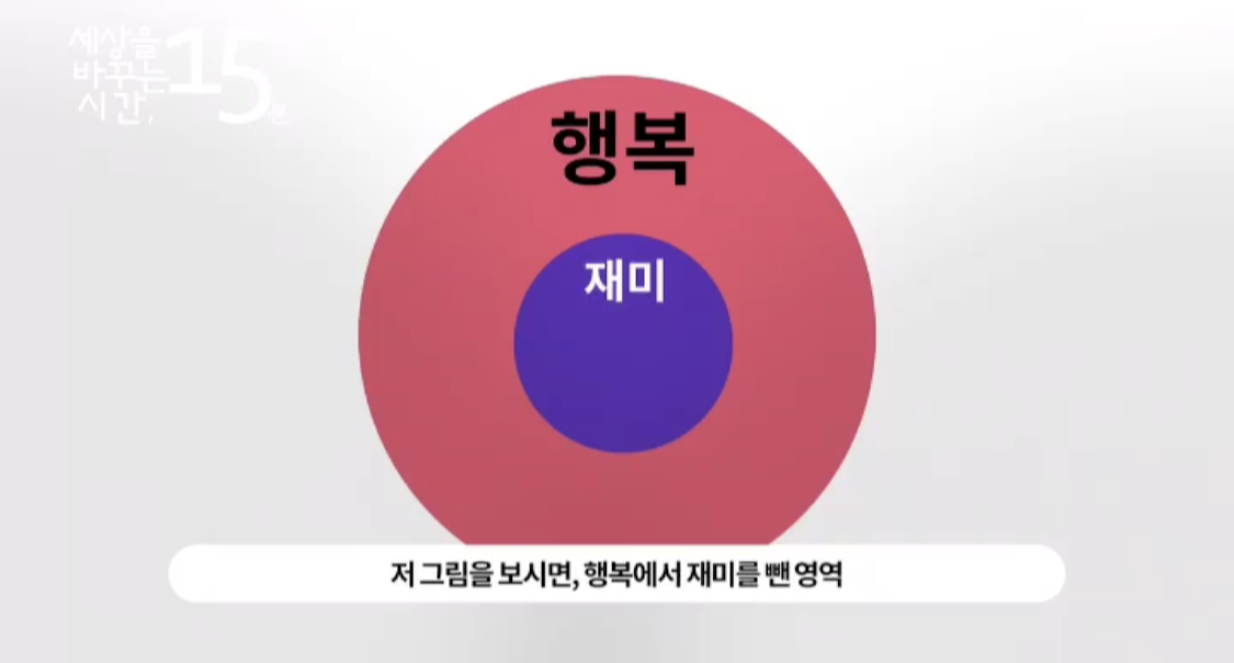 얼마 전 즐겨보는 강연 프로그램 <세상을 바꾸는 시간 15분>에서 인상 깊은 강연을 봤다. <재미의 본질> 저자이자 경성대 교수인 김선진 교수의 강연이었는데 재미와 행복의 관계에 관한 흥미로운 이야기를 전해주었다.