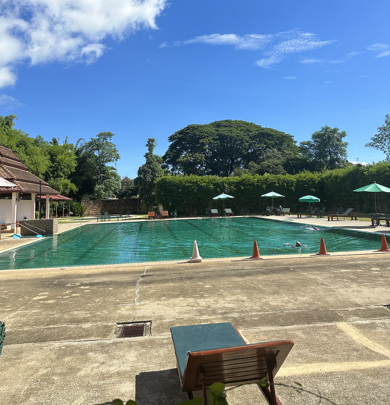 수영복으로 갈아입고 수영장을 나왔다. 시설은 낡았지만 엄청 넓고 수질 관리는 잘 되어 있는 것 같았다. 나이 많은 외국인 2-3명 정도가 평온하게 선베드에 누워있었다. 그늘 진 곳에 대충 자리를 맡고 수업 10분 전에 물속으로 들어갔다. 수영을 좋아하기는 하지만 아직 물공포증이 좀 있다. 처음 들어갈 때 숨이 잘 차고 두세 바퀴 몸 푸는 시간이 있어야 숨이 길어진다.