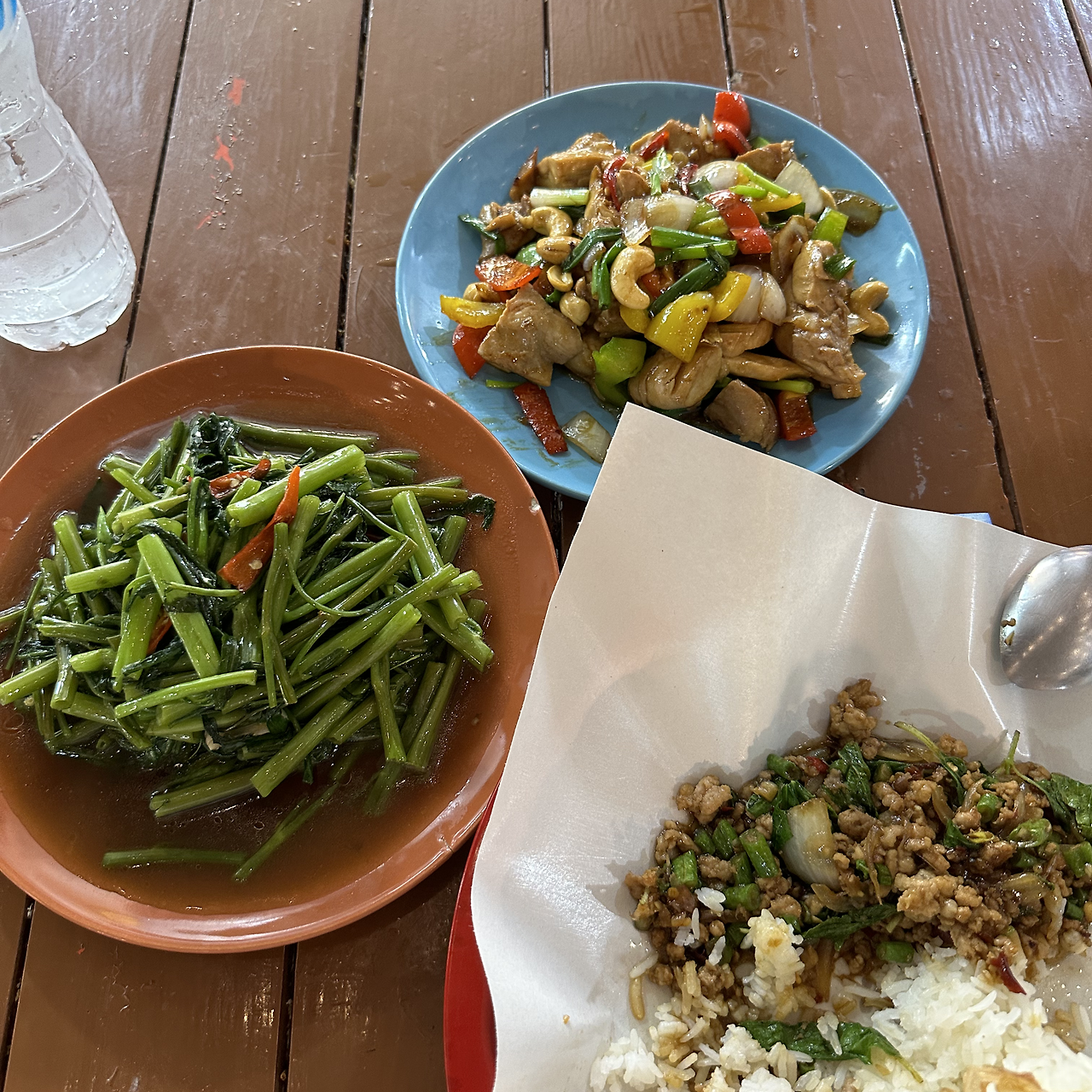 돌아오는 길에 동네 야시장으로 갔다. 여기 망고가 제일 맛있어서 망고를 사러 왔는데 아주머니 또 결석이시다. 저녁이나 먹고 갈 겸 테이블에 앉았다. 다들 선데이 마켓으로 몰려갔는데 사람들도 한적하고 문 닫은 가게들도 많았다. 태국 음식을 몇 개 시켰다. 여기가 선풍기가 없는 자리여서 친구는 많이 더웠나 보다. 많이 못 먹는다 생각했는데 다음 날이 되어서야 더위에 지친 본인의 모습이 매우 실망스러웠다며 고백을 했다. 본인은 엄청 강하다며 모기에 물려도 약도 안 바르던 친구다. 치앙마이의 더위가 이렇게 무섭다. 나는 이제 적응이 되어 가는데 이제 일주일 된 치앙마이 애송이에게는 충분히 있을 수 있는 일이라며 위로해 줬다. 일기 끝-