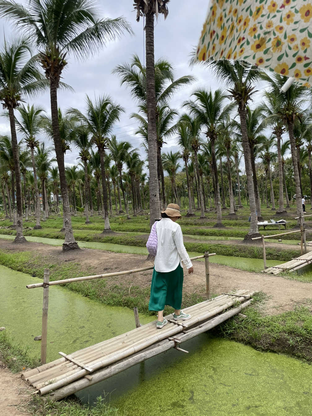 둘이 함께하는 코코넛 마켓. 혼자 왔을 때는 부끄러워 사진을 못 찍었기 때문에 오늘은 제대로 찍고 싶었다. 둘 다 원피스로 의상도 맞췄다. 사진 찍는 중국인들이 진짜 많았다. 이번 여행을 하면서 중국인이냐는 이야기를 진짜 많이 들었다. 예전에는 얼굴만 봐도 국적을 100% 맞출 수 있었는데, 요즘 중국인들은 진짜 가까이 가서 말소리를 듣지 않고서는 정말 모르겠다. 오히려 치앙마이에서 힘 빡주고 꾸미며 여행하는 사람들이 중국인, 장기 거주일수록 점점 내려놓고 내추럴해지는 사람들이 한국인이라는 게 나의 판단이다.