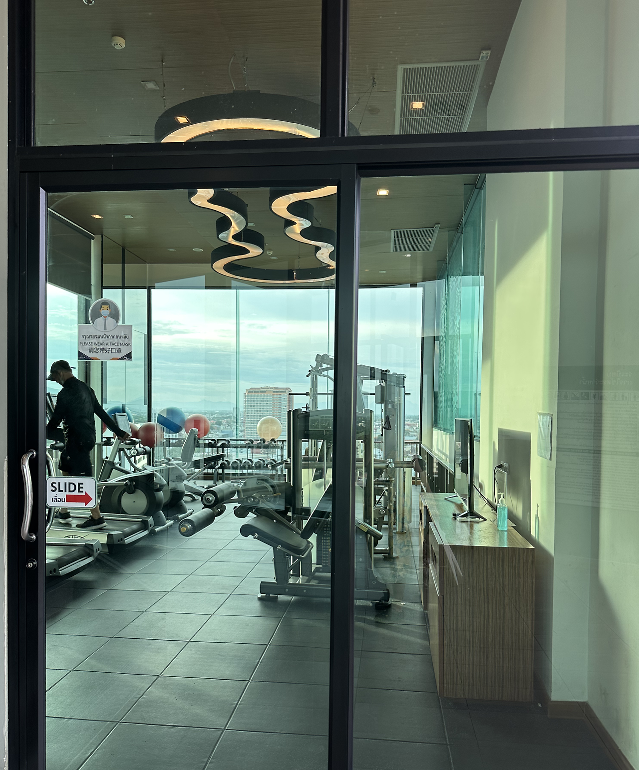 나 혼자 맞는 첫 번째 아침. 푹 잤다고 생각했는데 생각해 보니 회사 00팀에게 쫓기는 꿈을 꿨다. 이게 뭐람. 일어나서 운동복으로 갈아입었다. 9시에 헬스장에 가니 두 명 정도가 있었다. 사고 나서 한 번도 입지 않은 땀복을 가져왔는데 정말 잘 가져왔다는 생각을 했다. 헬스장은 고무 냄새가 좀 났지만 16층에 통창으로 다 용서가 된다. 50분 유산소와 근육 운동으로 한 시간 반을 채웠다. 헬스장만 잘 이용해도 이번 여행 목적과 숙박비는 제대로 뽑을 것 같다. 바로 수영을 갈까 했지만 햇살이 많이 뜨거울 것 같았다. 그리고 난 이미 많이 타기 시작해서 자제할 필요가 있다.