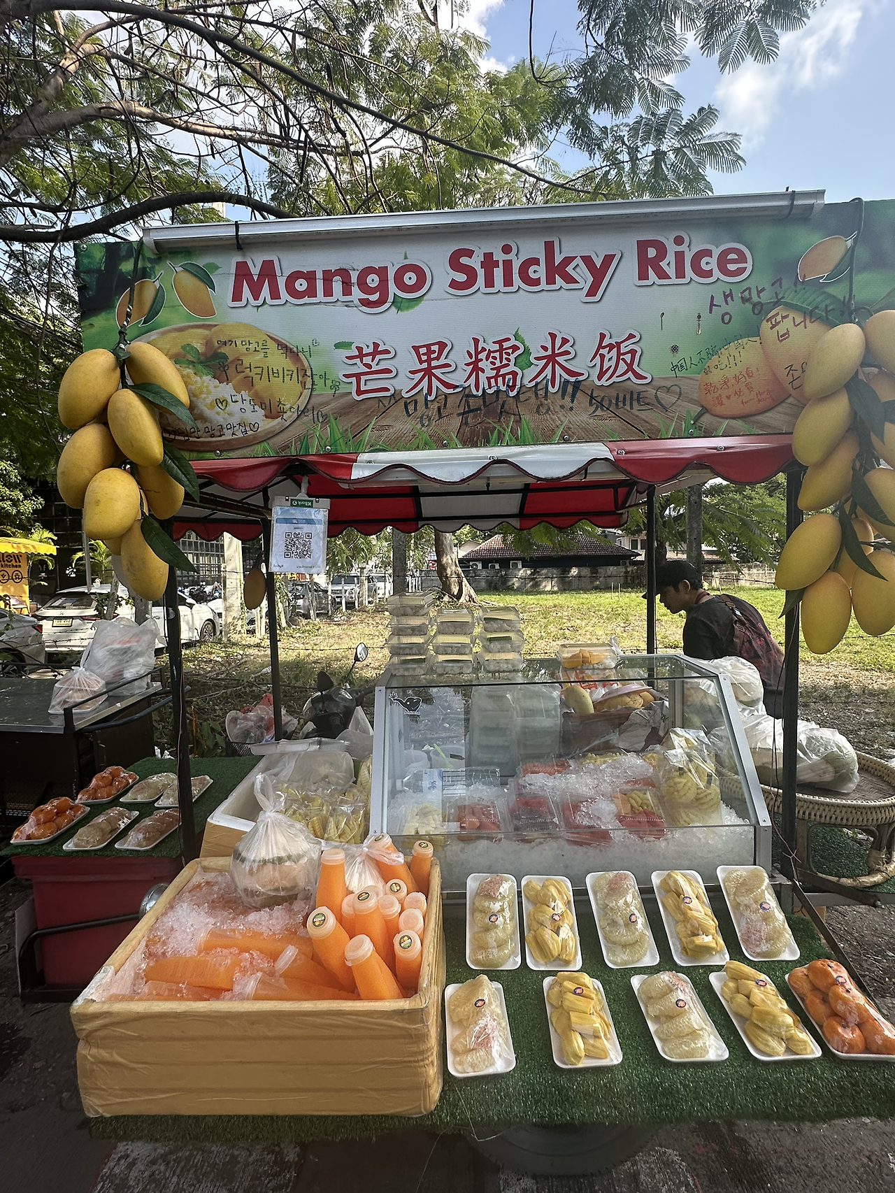 님만해민은 카페도 많고 그나마 길도 잘 정비되어 있어서 다니기 괜찮았다. (물론 한국에 비하면 이게 도로인가 싶은 길도 많지만) 골목 파악을 하기 위해 돌아봤다. 가까운 곳에 망고도 파는데 이미 한국이들에게 인기가 많은 곳인지 간판에 한국인들이 흔적을 남겨놨다. 한 박스에 50바트라니. 매일 출근도장을 찍고 싶다.