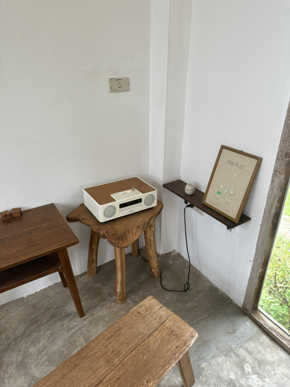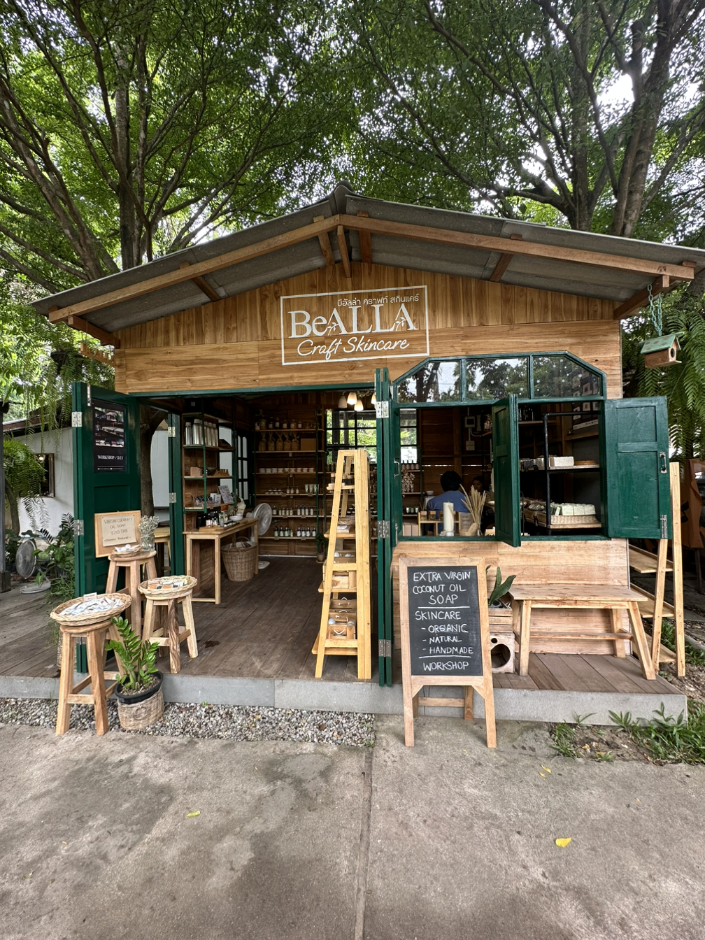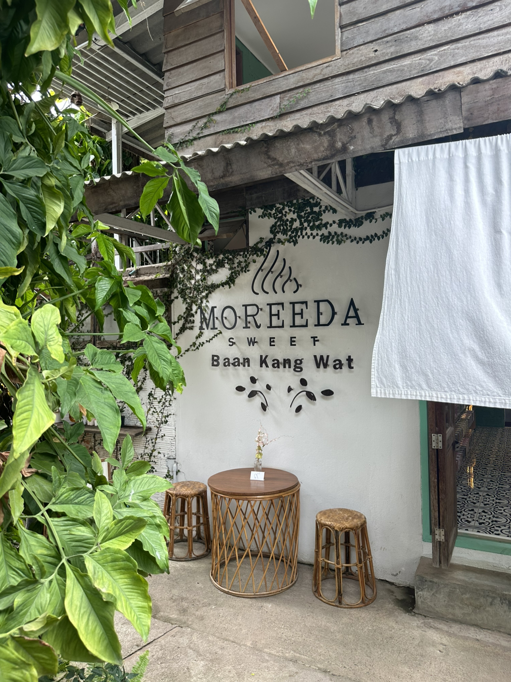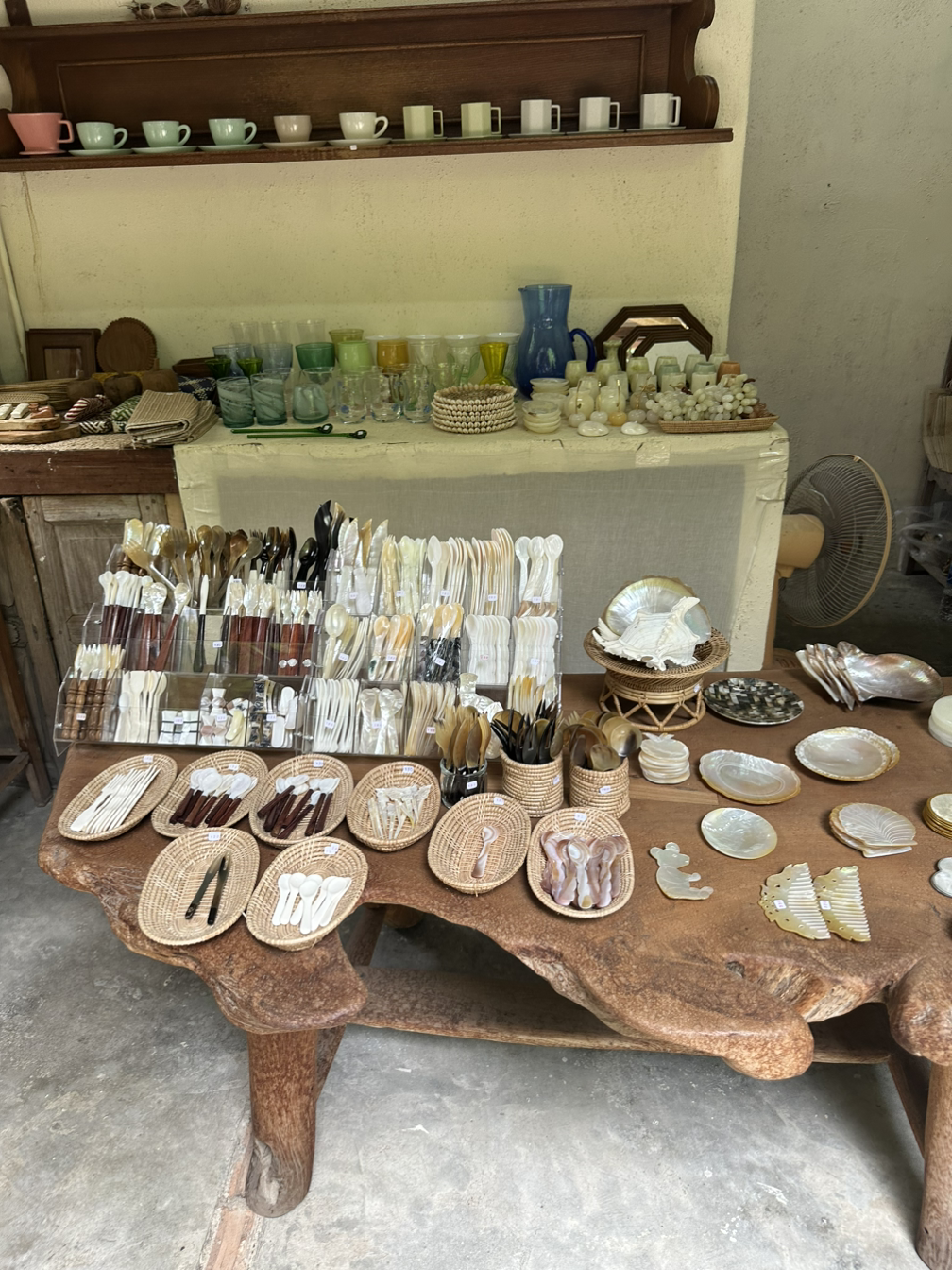 유튜브에서 본 것보다는 작은 규모였고, 생각보다 볼 건 없었다. 작품이라기엔 소품 정도를 만들어 파는데 그렇게 사고 싶은 느낌은 아니었다. 기대했던 자개 소품집이 제일 괜찮았다. 여기 근처에 또 한국인 사장님이 하는 카페+소품집이 있다고 한 것이 기억나서 검색을 해보니 걸어서 6분 정도 거리이다. 가는 길이 정말 시골길이다. 시골길 중간에 갑자기 뿅! 하고 나오는 수준. 누가 봐도 한국인인 사장님이 한국말로 인사를 해 준다. 인상이 너무 좋으시다. 우리 아빠였으면 언제 태국에 왔냐, 한국에서는 뭐 했었냐를 물었겠지만 ㅎㅎ 정말 분위기가 너무 예쁜 카페다. 소품샵과 붙어 있어서 구경을 했다. 자개 모양이 천차만별인데 아까 반캉왓에서 본 자개 수저가 더 예쁜 것 같아서 돌아가는 길에 거기서 샀다. 아메리카노를 한잔 시키고 에어컨이 되는 작은 방에 있는데 태국 대학생 두 명이 들어와 고양이와 놀고 있었다. 내가 좋아하는 갬성의 카페 인테리어였는데 고등학교 때 많이 듣던 제이의 노래가 나와서 갑자기 감성이 충만해졌다.