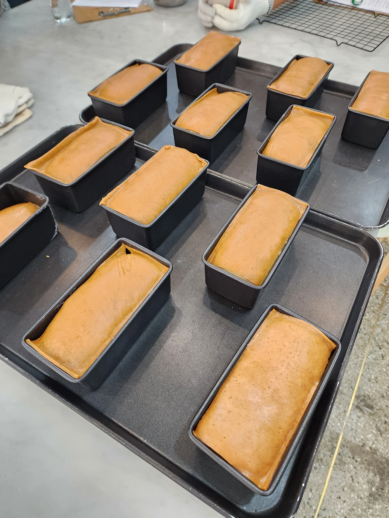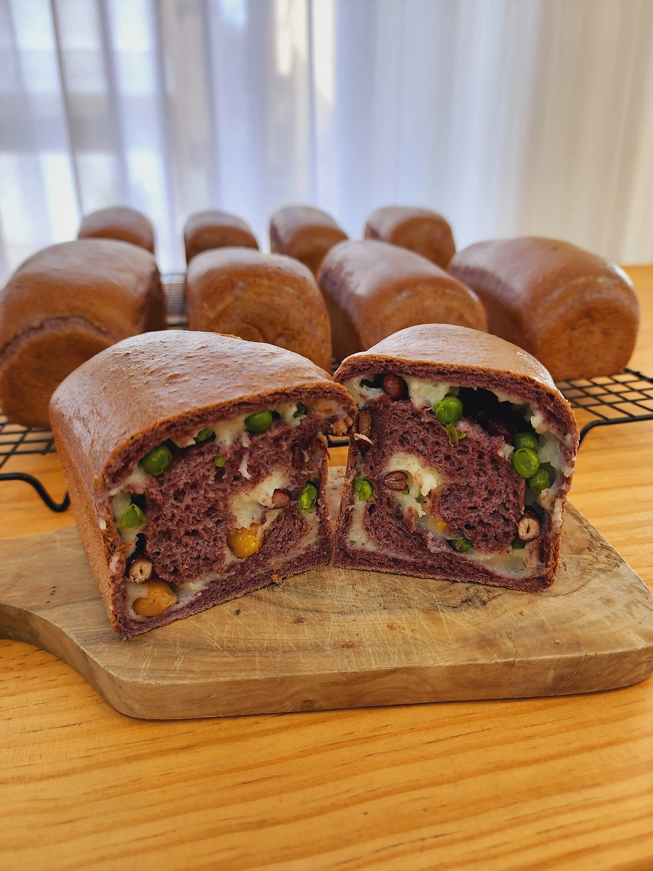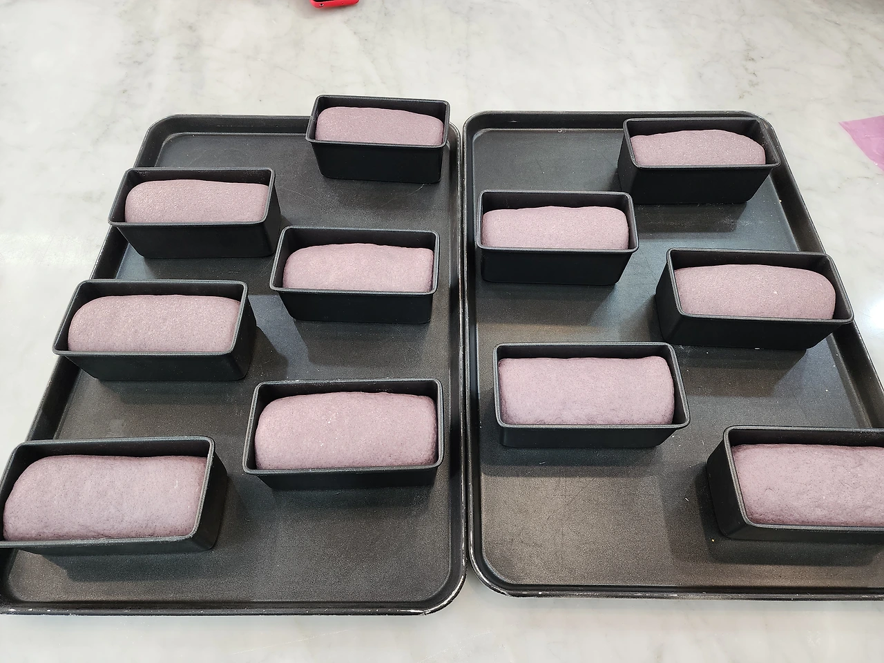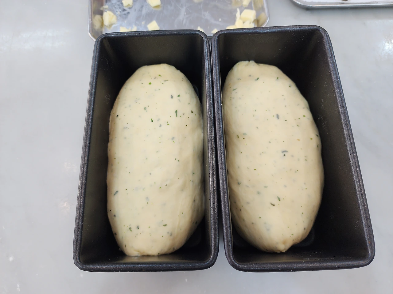 모카찰식빵도 발효 확인후 성형하여 팬닝까지 완성시킨다.