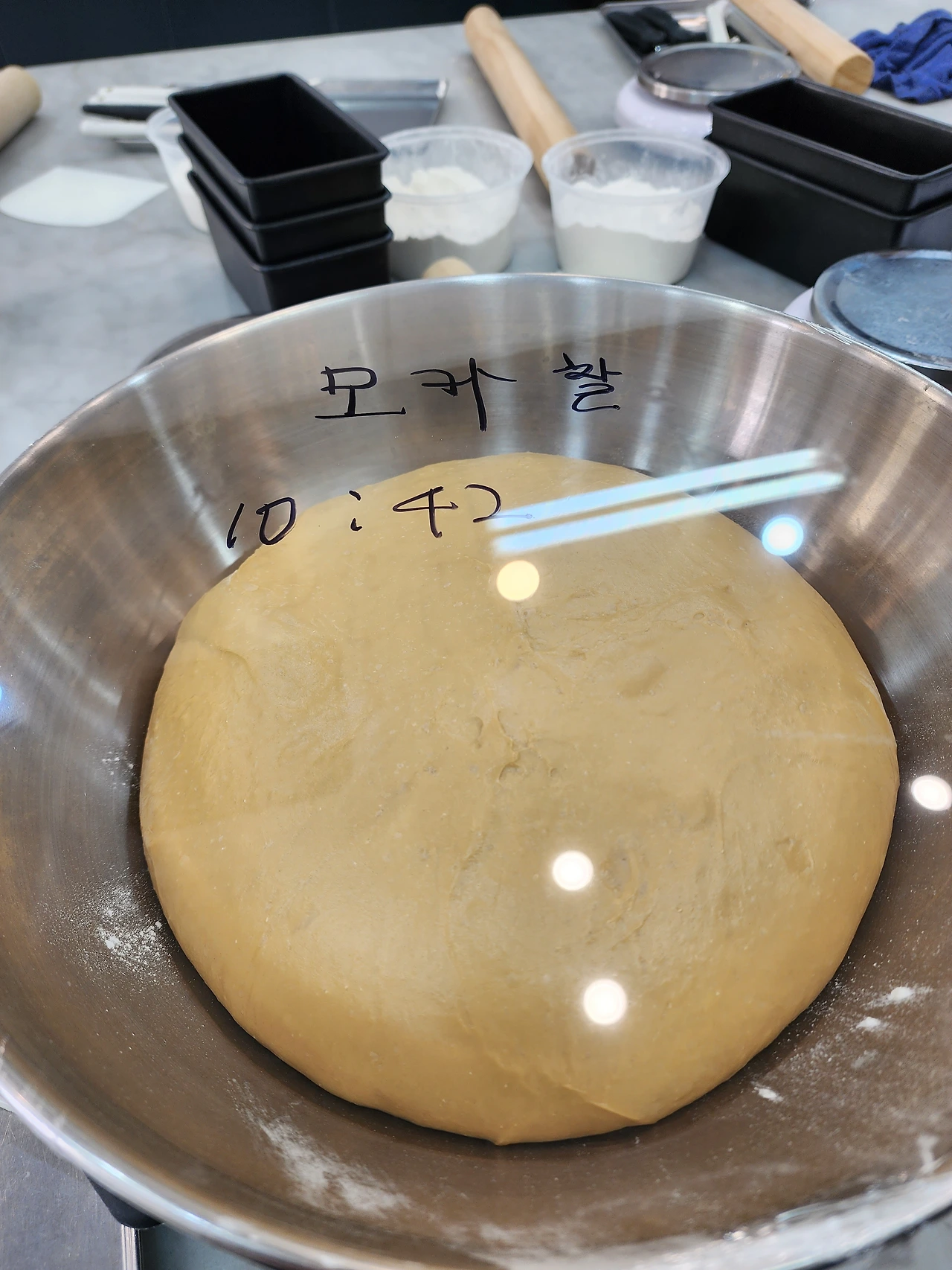 모카찰은 비스킷까지 씌워주고 이제 2차 발효후 예열한다.