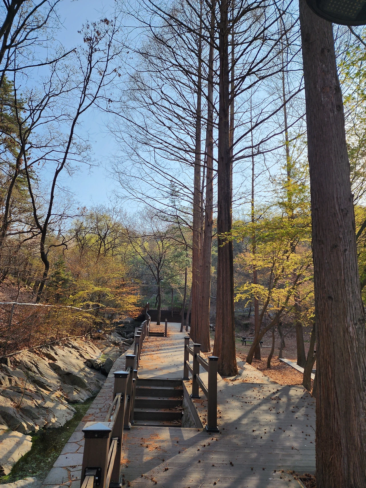 산책길 여유를 좀더 길게 걷는 보상으로 도서관 책도 반납할겸 워커힐 산책로로 들어섰다. 주초만해도 이리 안폈는데 팝콘 터지듯 만개한 새하얀 벚꽃들에게 한눈파느냐 정신없다.