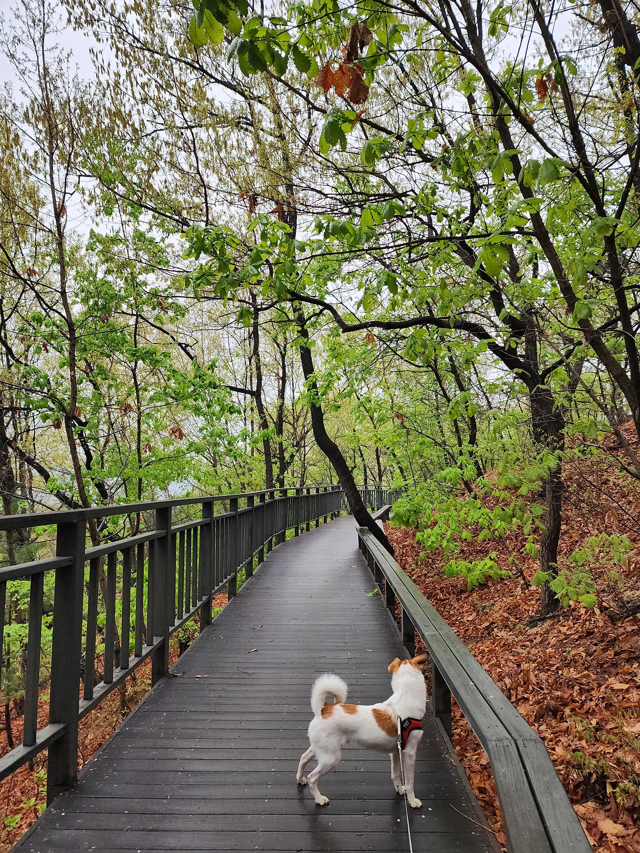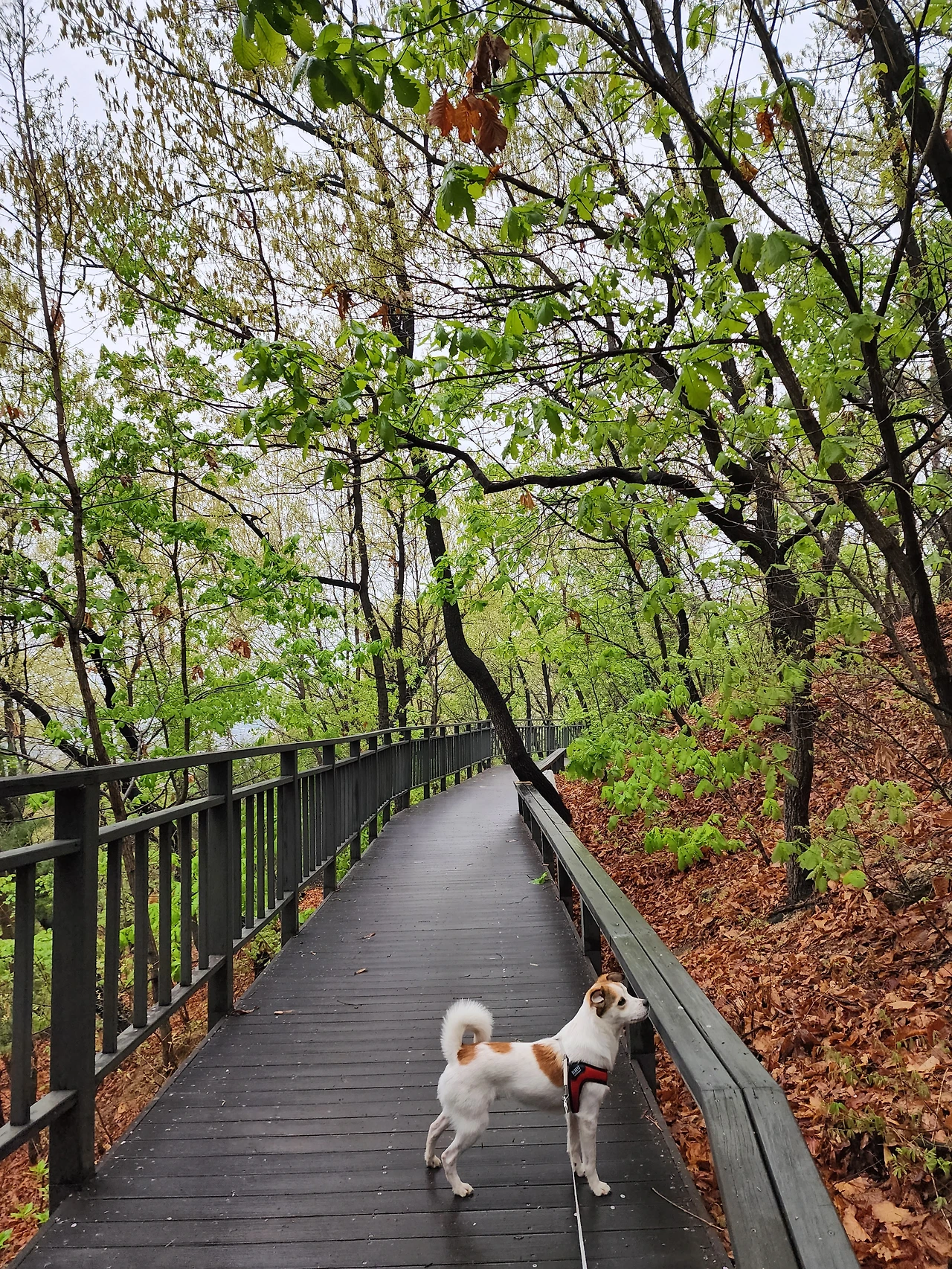 잔뜩 흐린 날씨 였지만 일단 나서 보기로 했다. 늘 다니던 산책로는 짙고 선명하게 나와 반려견을 반겨주는듯 했다.