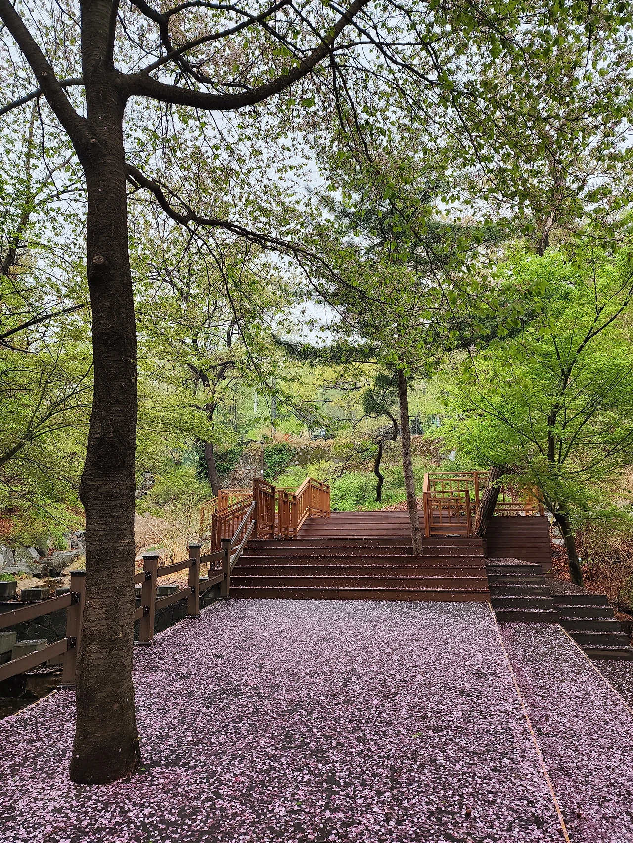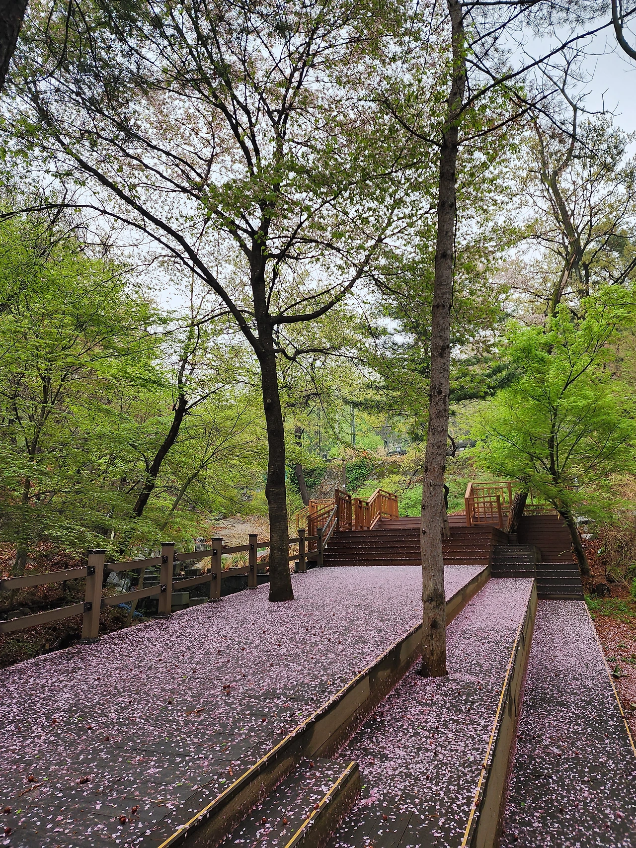 비 온뒤에 꽃잎은 그대로 카페트가 되어 기꺼이 자리를 내어주니, 매순간이 감동이다.