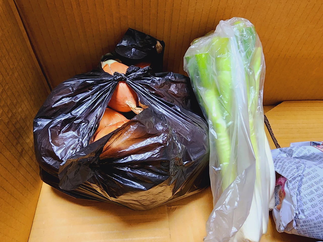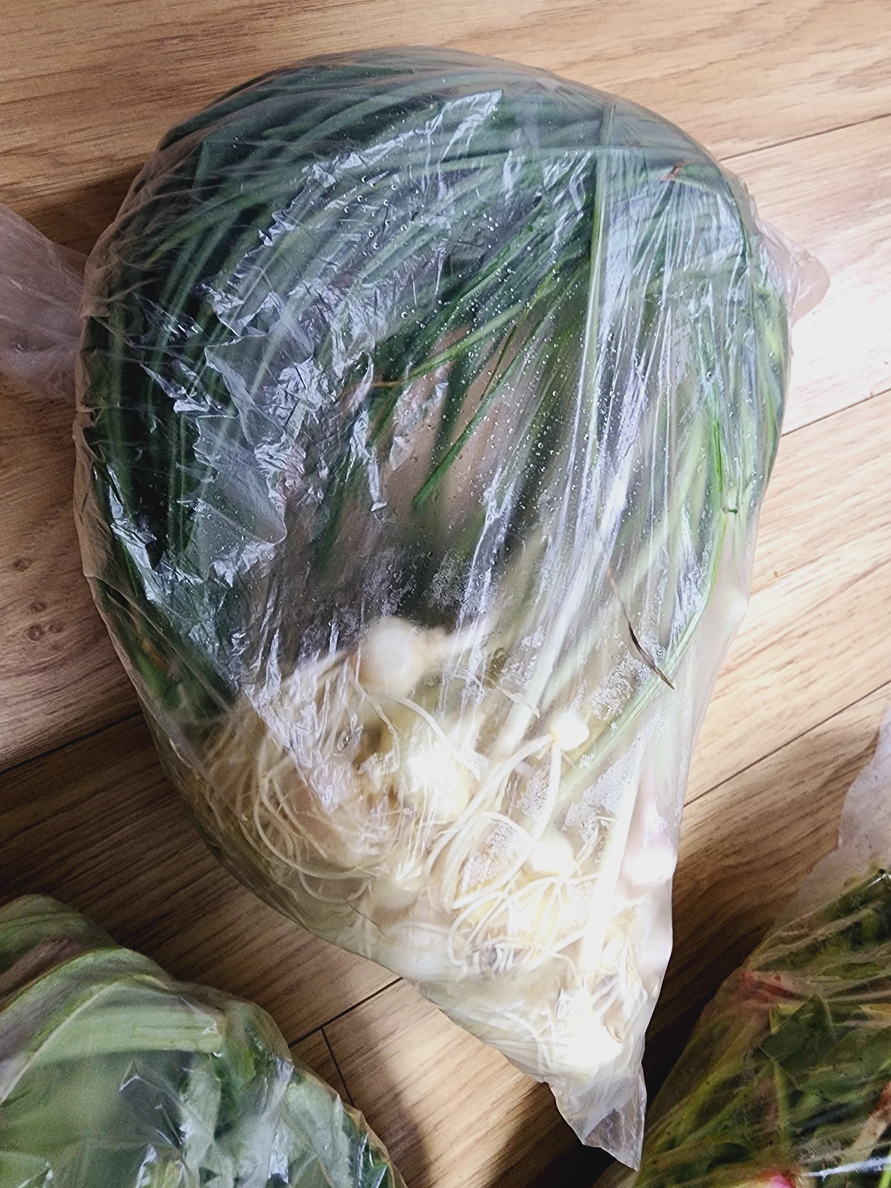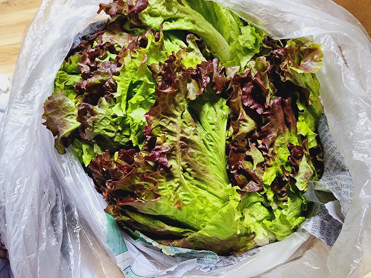 시금치, 상추등은 양이 많아 이웃집들과 조금씩 나눠먹으려고 나눠 담았다. 이를 보던 둘째가 한마디 한다.
