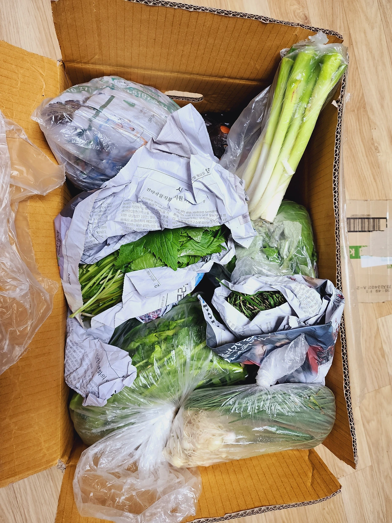 걷다가 문득 찾은 봄을 반기며 반가움을 사진에 담아 보는게 전부였지만, 상자속 봄나물들을 보는 순간 정성가득 봄이 집안에 들어와 있음을 느꼈다. 가슴속까지 따스한 봄햇살이 비추는 기분이였다.