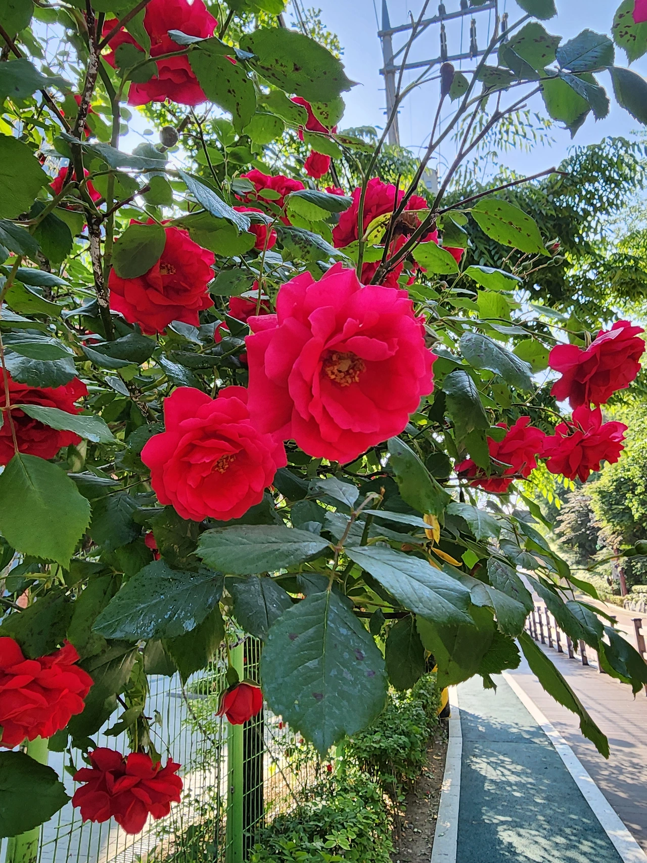 장미가 제철인가보다. 골목골목 담장을 빼곡히 메워 인사를 건넨다. 그냥 지나칠수없이 찰나의 순간을 담는다.