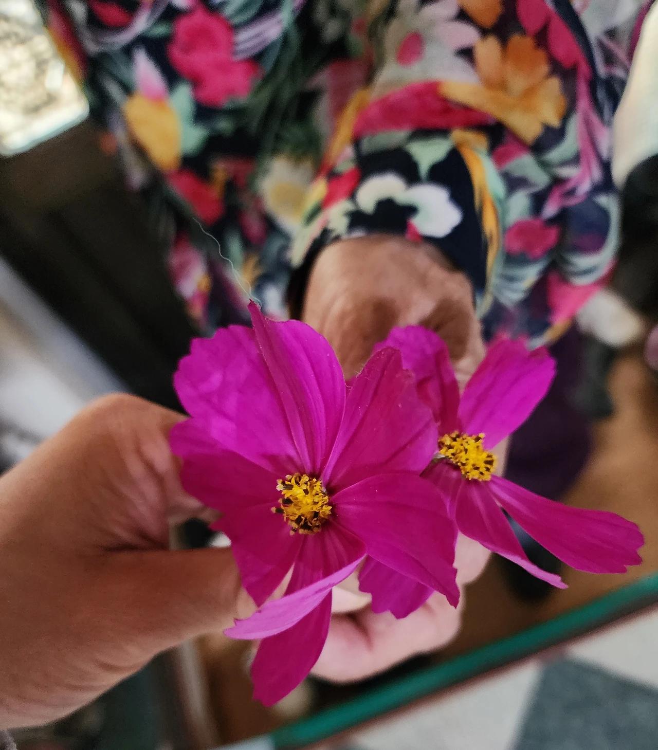 그리고 막대기를 잡은 한손엔 엄마의 가을이 따라왔다. 밤나무 아래 길가에 핀 코스모스가 들려 있었던 것이다. "꽃을 사시오~!"하며 내미는 엄마의 감성에 마음이 흐믓하다. 가을을 함께 느끼고 돌아오는 귀경길엔 안부전화를 더 자주 드려야 겠다는 생각이 들었다.