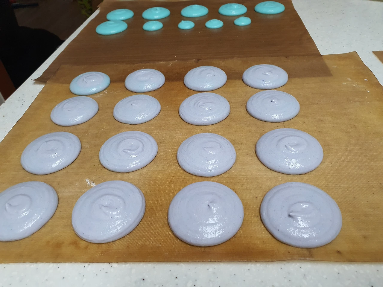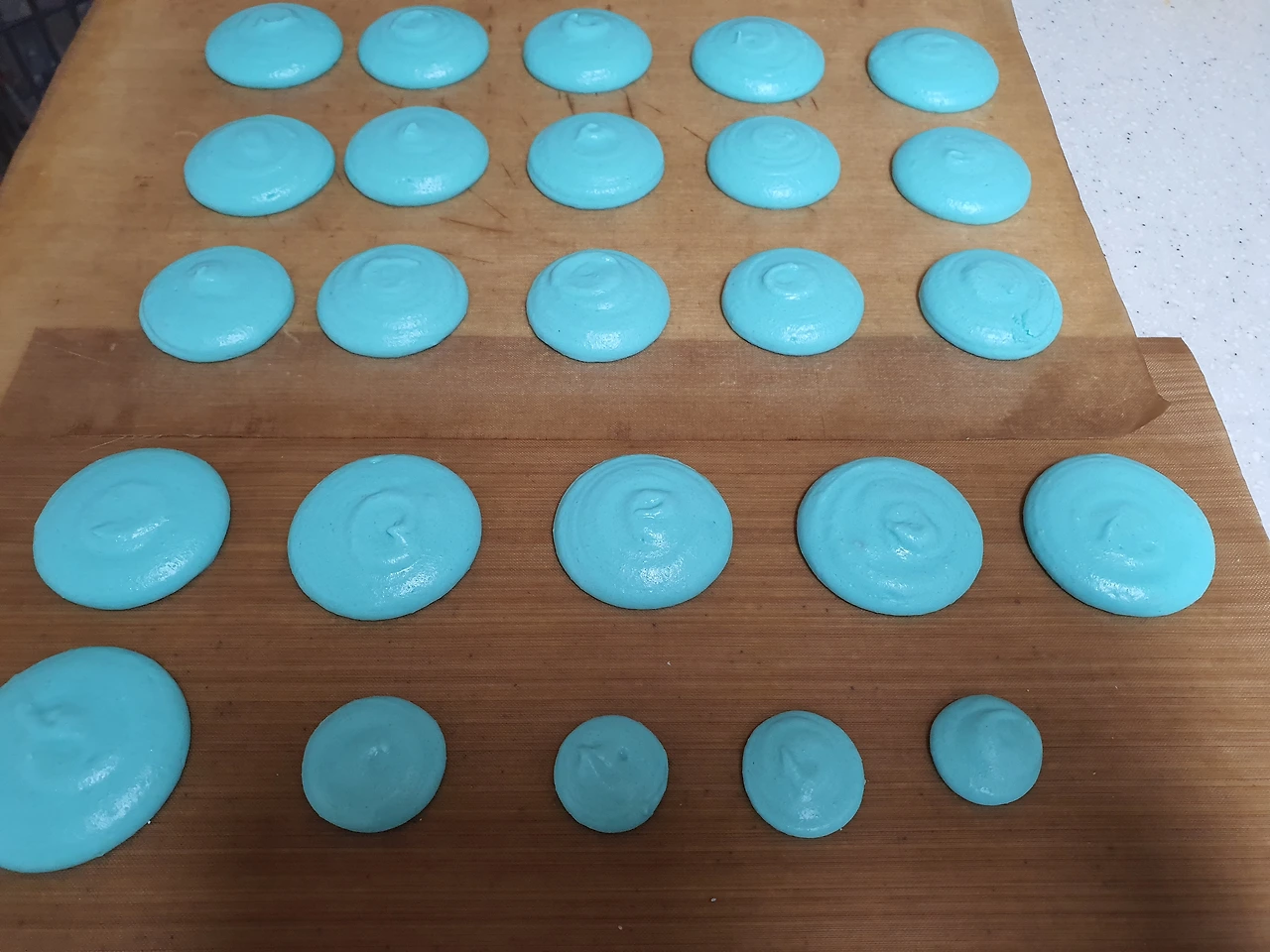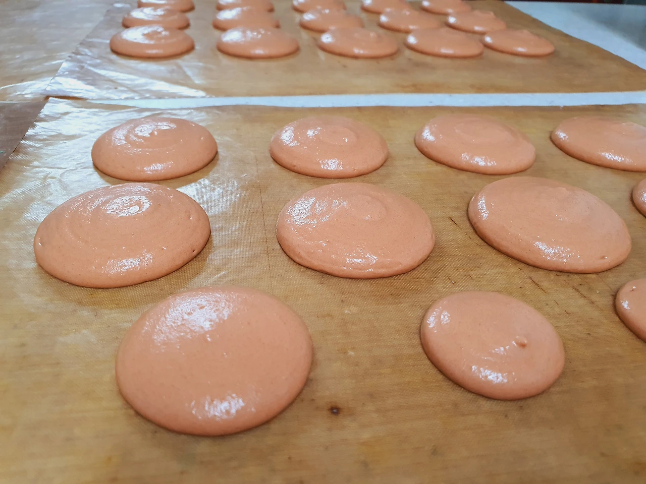적당한 크기와 간격으로 마카롱을 짜준다.