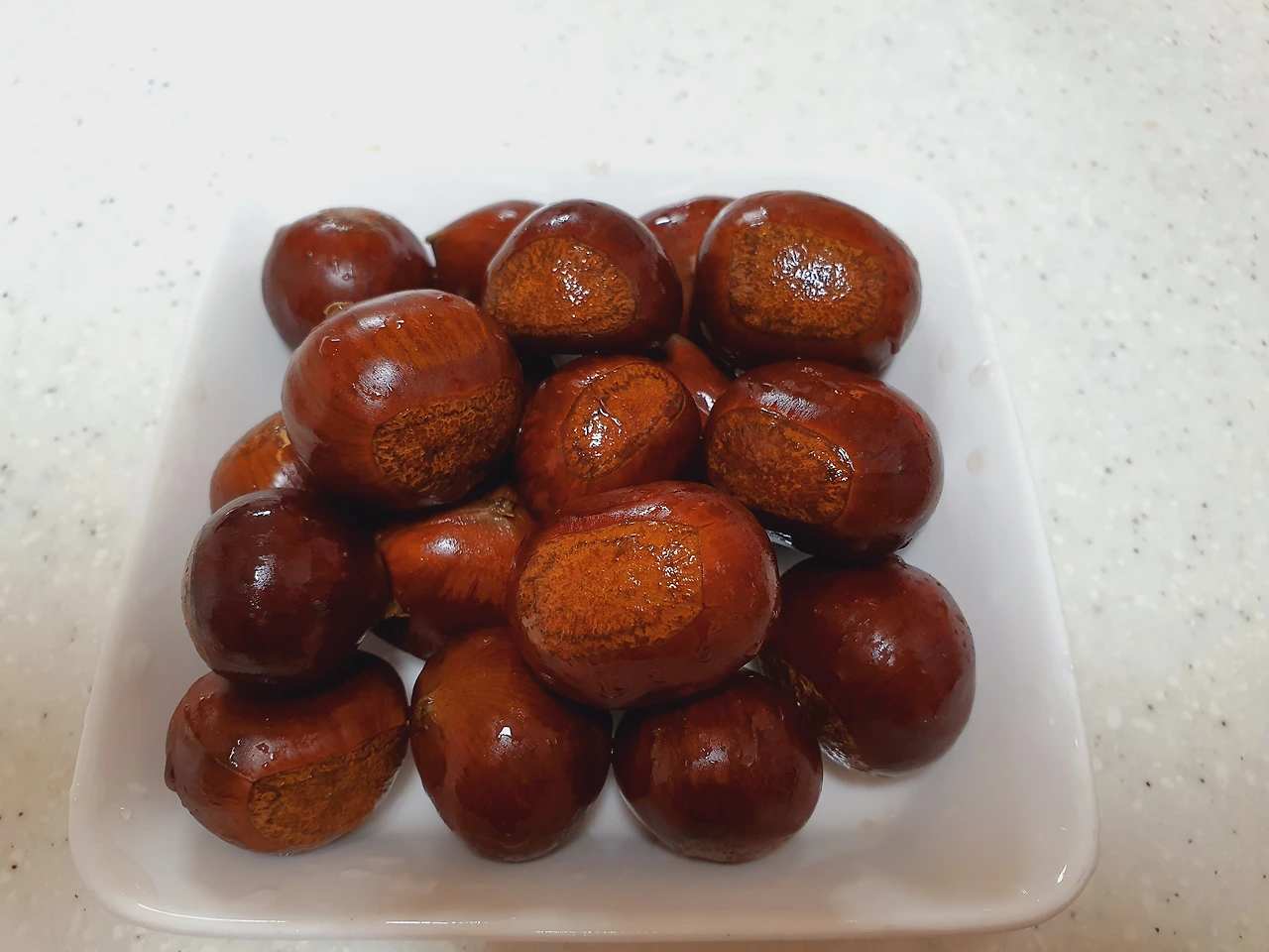 퇴근 후 근처 야채가게에 들러 콩나물이랑 두부를 고르다 알밤 한 봉지 눈에 들어온다. 구워 먹기 딱 좋아 보이는 크기다. 생긴 것도 맛있게 생겼다. 동글동글한 이 알밤을 에어 프라이기에 구웠다.