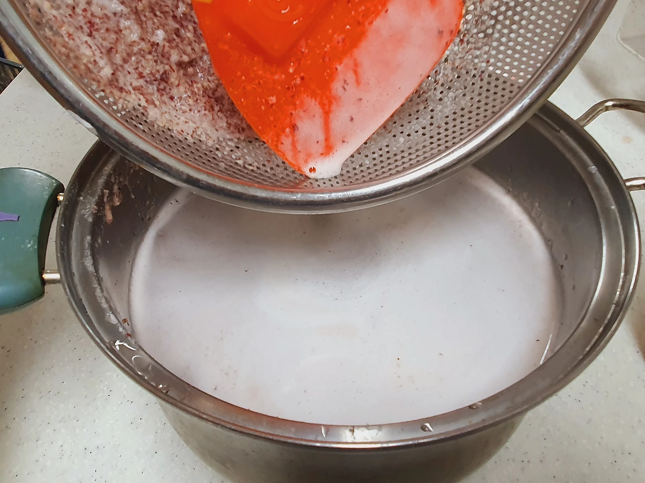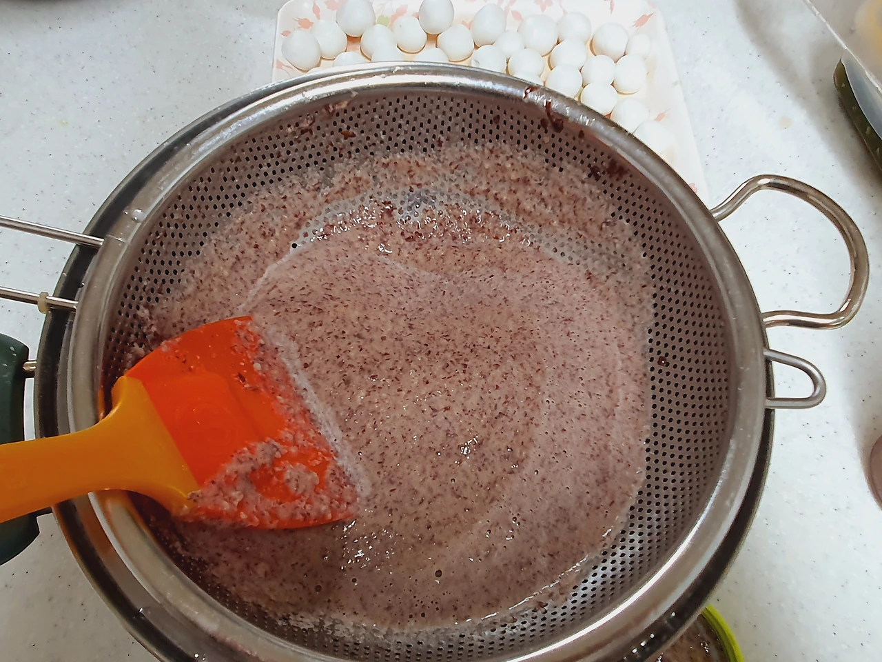 믹서기로 갈아서 팥물을 만들었다.