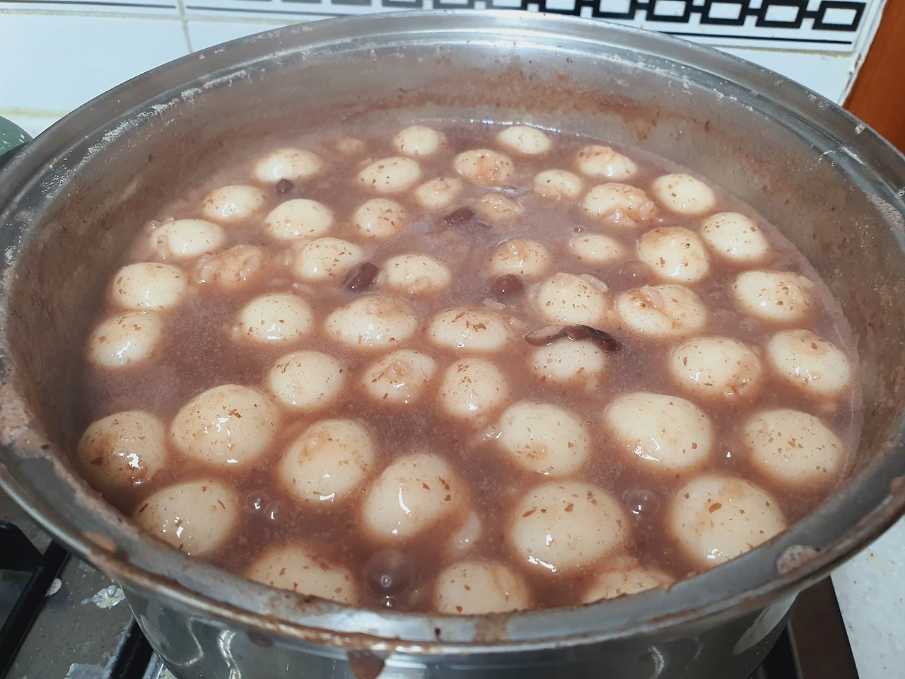 소금도 넣고 간을 맞춘다. 바글바글 팥물이 끓고 쌀알이 반쯤 익을 무렵 새알심을 넣기 시작했다. 나무주걱은 쉬지 않고 계속 열 일하는 중이고, 새알심이 한두 개 떠오르기 시작할 무렵, 팥죽도 어느덧 막바지를 향한다. 떡집 사장님 말씀이 새알심이 떠오르면 불을 끄라고 하셨기에 적당한 타이밍을 기다리고 있었다.