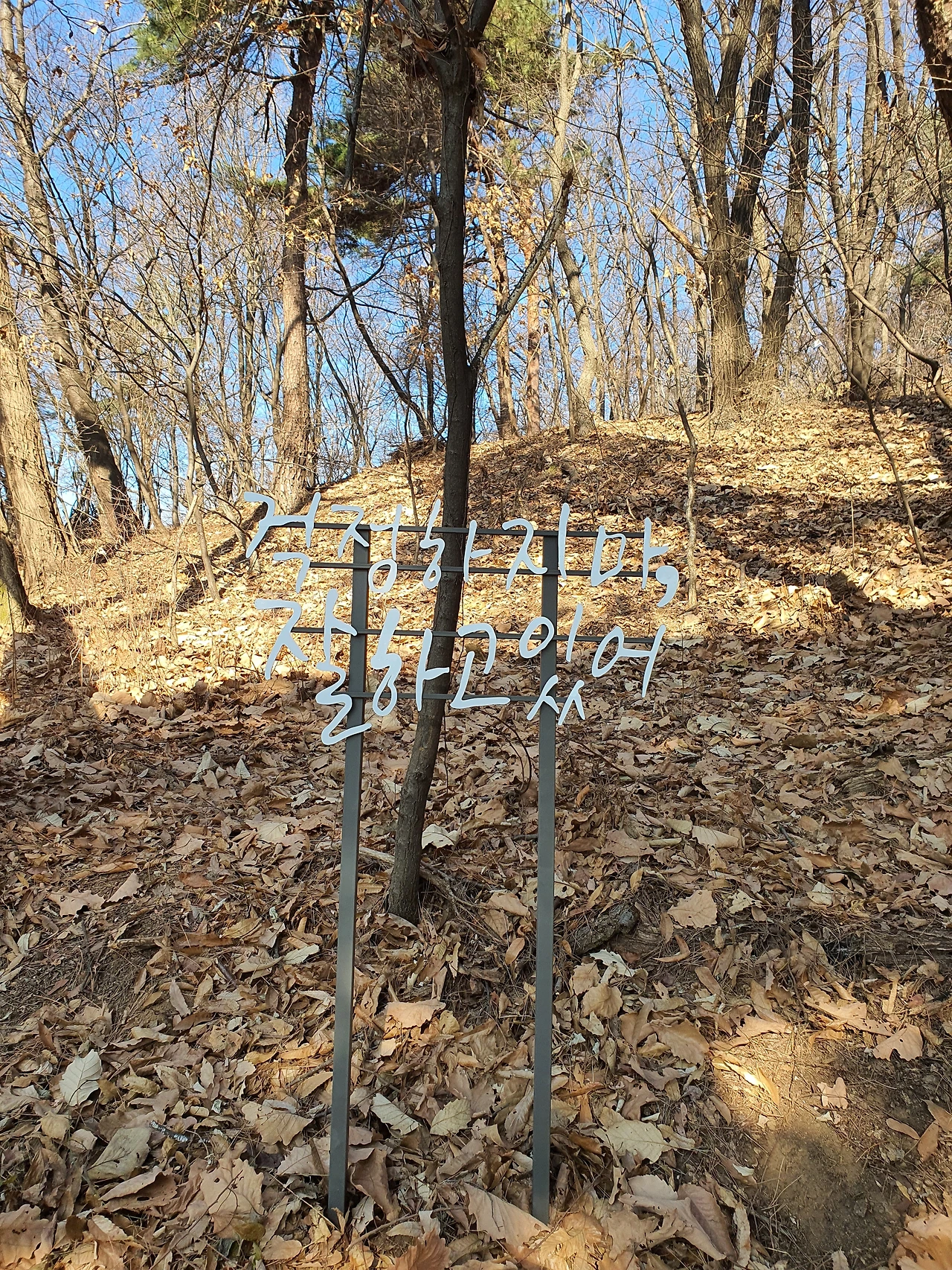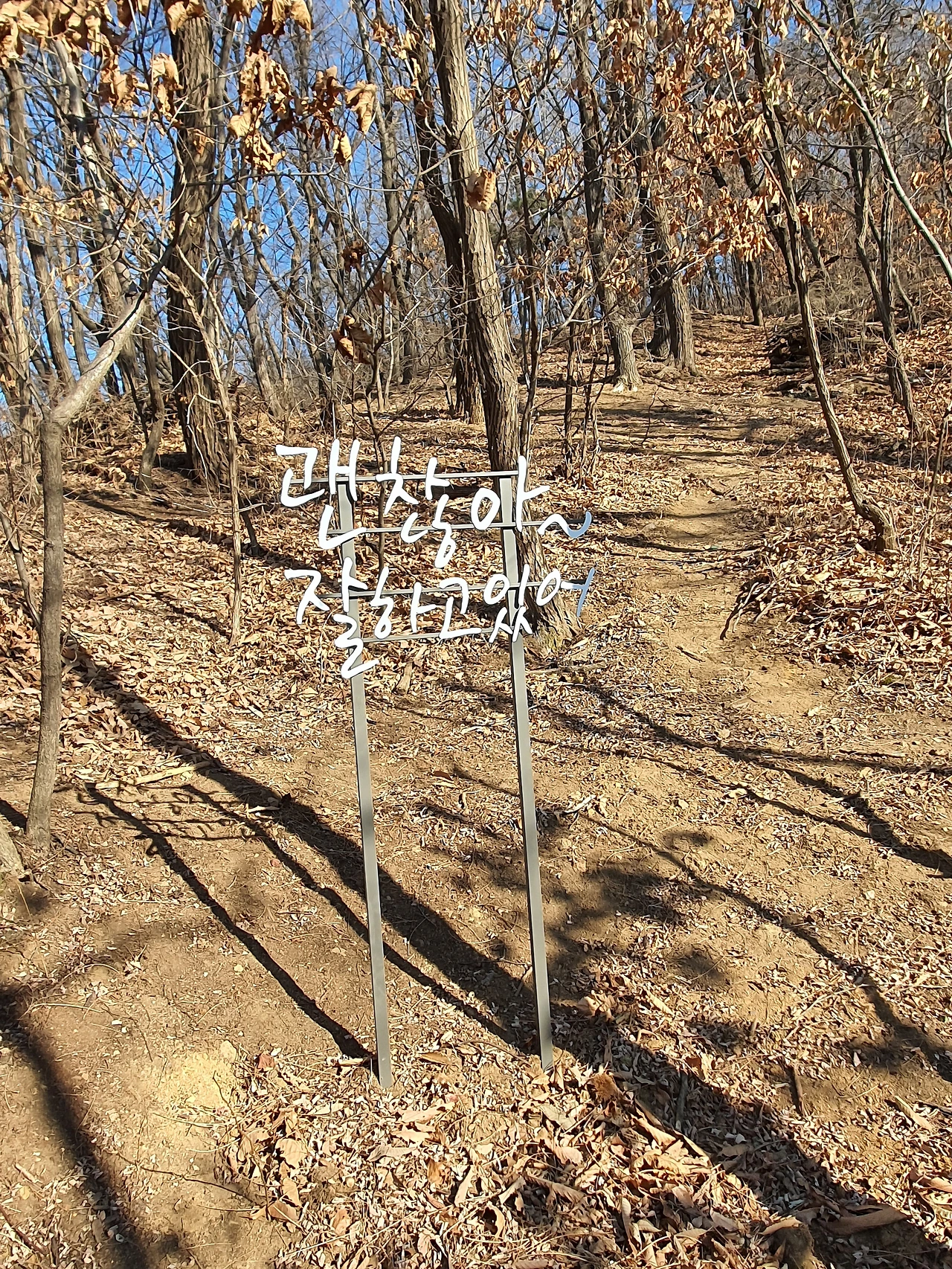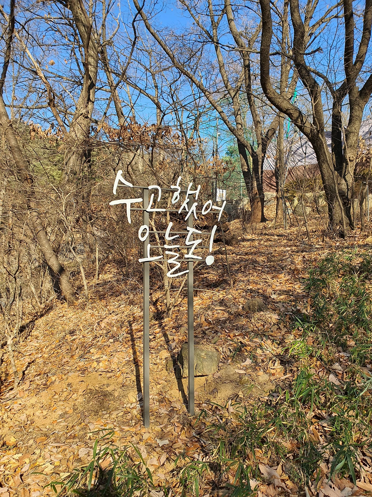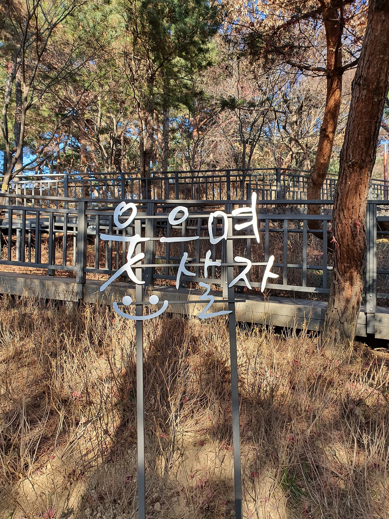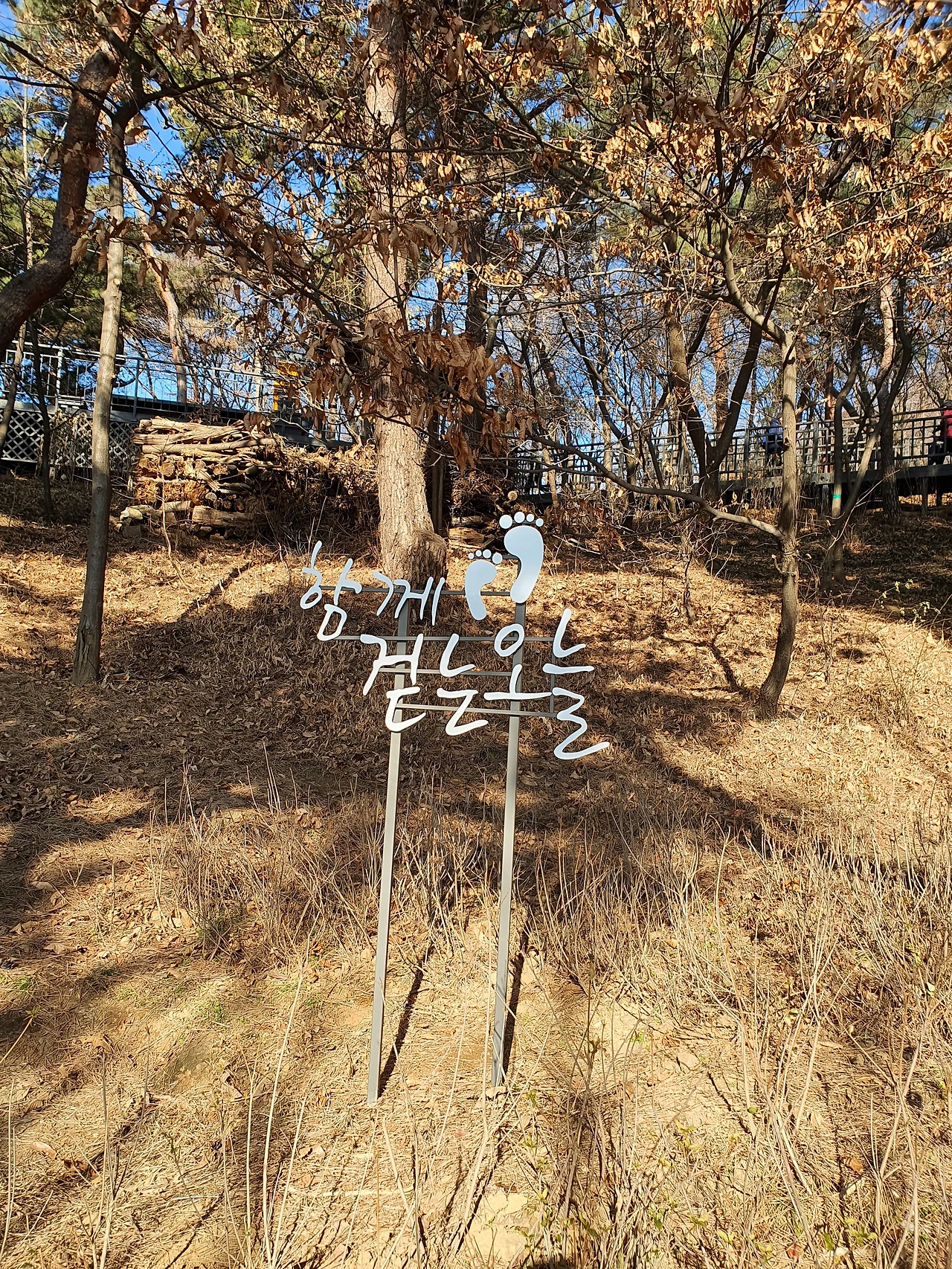 테크길을 걷다보니 계단이 없다. 노약자나 장애인등의 보행 약자도 걸을수 있다고 한다. 산책길 곳곳엔 이야기 푯말이 세워져 있고, 마치 겨울 숲과 이야기를 나누는듯 한 문구들이 좋아 걷다보니 기분이 한결 좋아졌다.