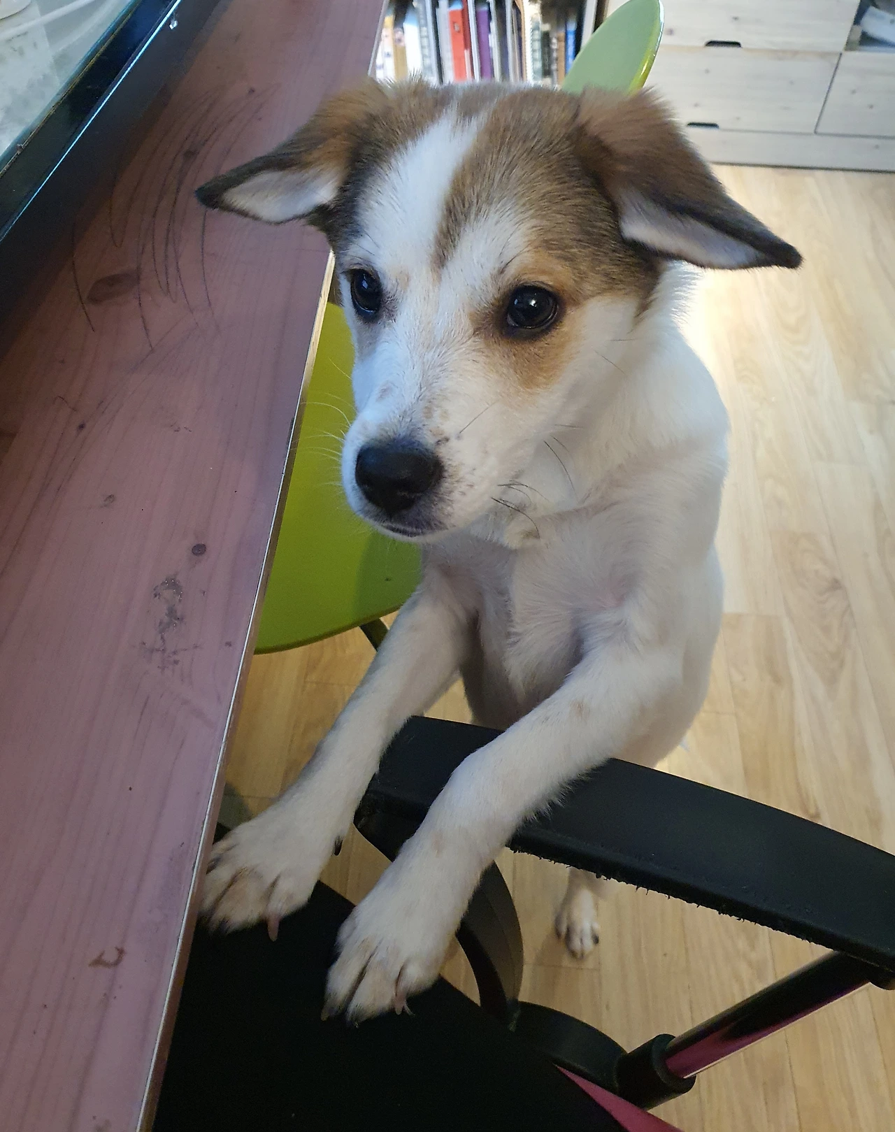 우유는 내게 다가오더니 책상에 앞다리를 올리고 내게 관심을 보인다.