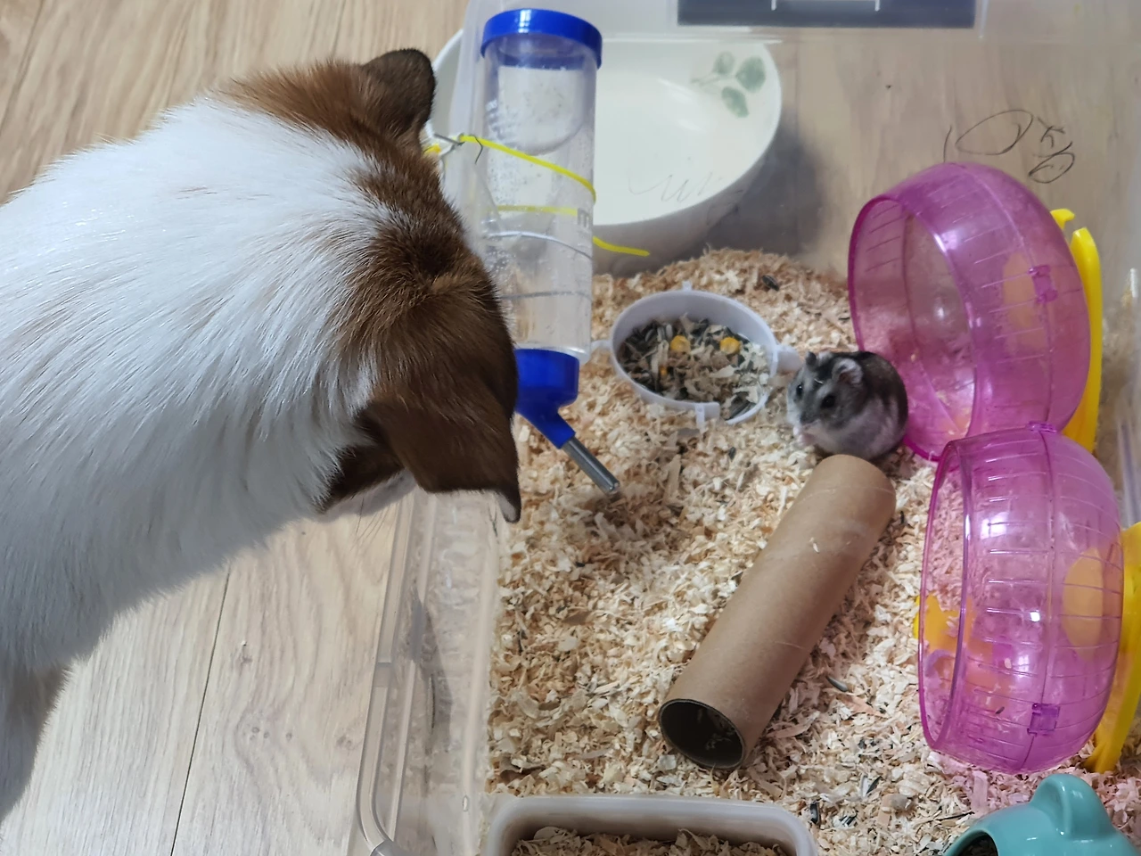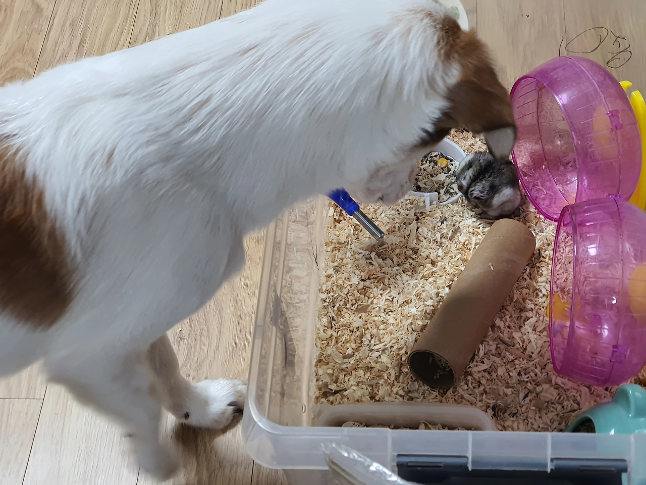 우리집엔 4월이면 1년 되어가는 반려동물 햄스터 머랭이와, 10월에 만난 인연으로 동거중인 반려견 우유가 있다. 동물키우자는 아이들의 성화에 못이겨 햄스터를 먼저 들렸다. 3주된 햄스터는 첨엔 적응하며 깨물리기도 하고 귀여운 모습과 달리 겁도 많아 보였다. 햄스터의 이름은 머랭이로 지어주고, 우리는 그렇게 반려동물과 동거생활이 시작 되었다.