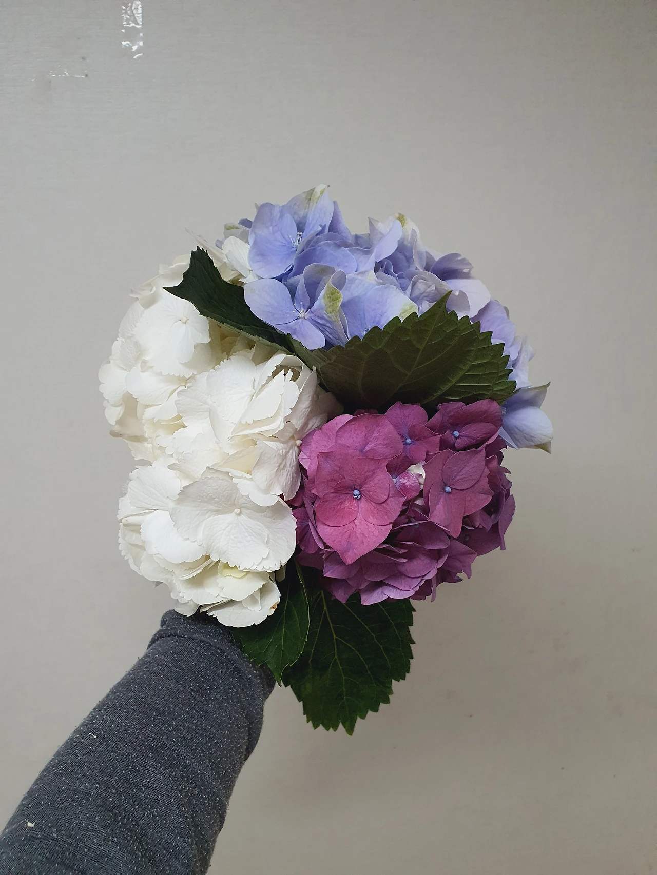 길다란 상자안엔 세송이의 수국이 담겨져 있었다. 수국은 내가 좋아하는 꽃중에 하나.