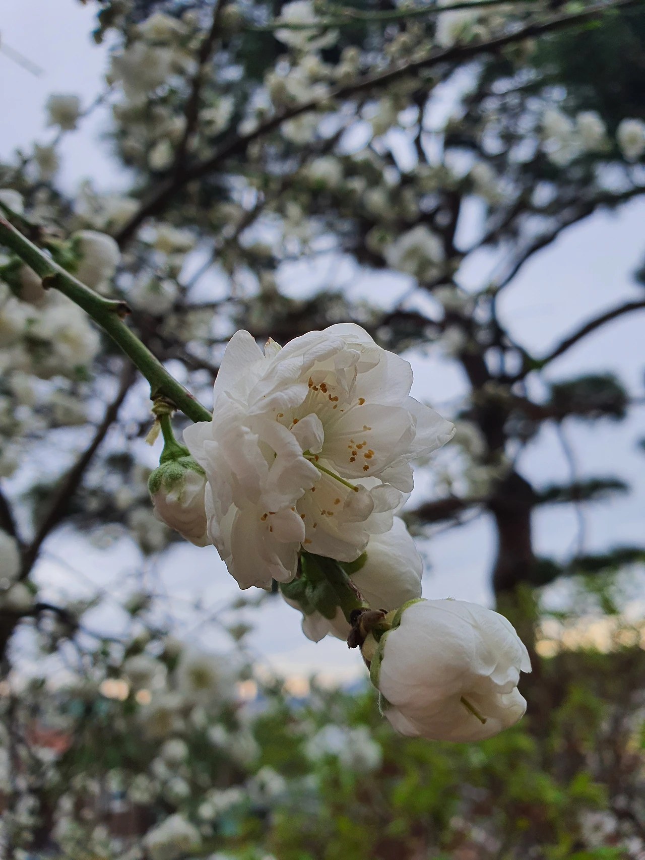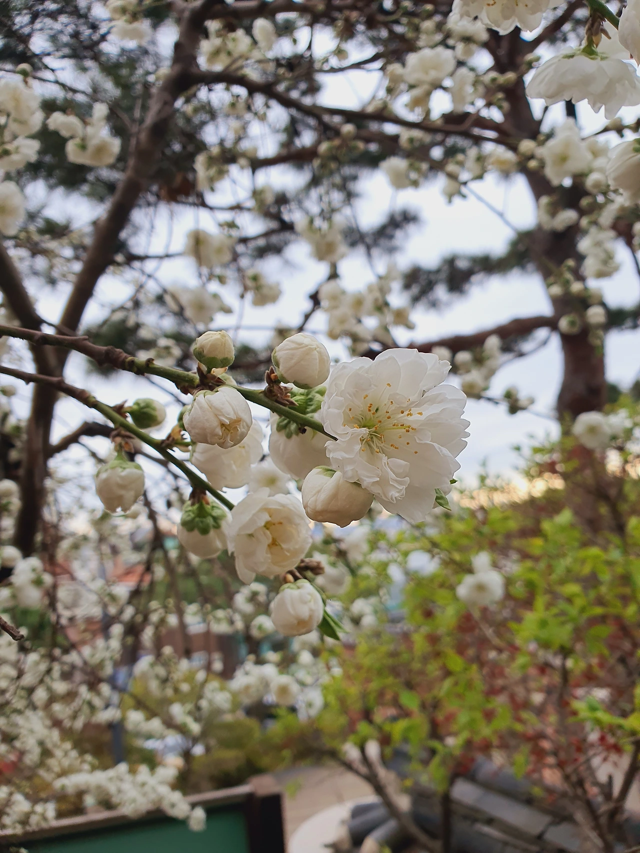 격리된 기간동안 산책길엔 많은 변화가 보였다. 벚꽃은 엔딩에게 양보했지만 그 뒤에 많은 꽃들과 나무마다 돋아난 새싹들이 익숙했던 산책길에 새로운 봄을 로그인 시킨 기분이였다. 입구에 폈던 목련은 어느새 꽃잎을 다 떨군채 내 시선은 매화나무가지 끝에 곱게 핀 매화꽃에 올인해 있었고, 조금 걷다보니 진달래는 온대간대없고, 그자리엔 푸른 새싹들이 파릇파릇 돋아나 있었다.