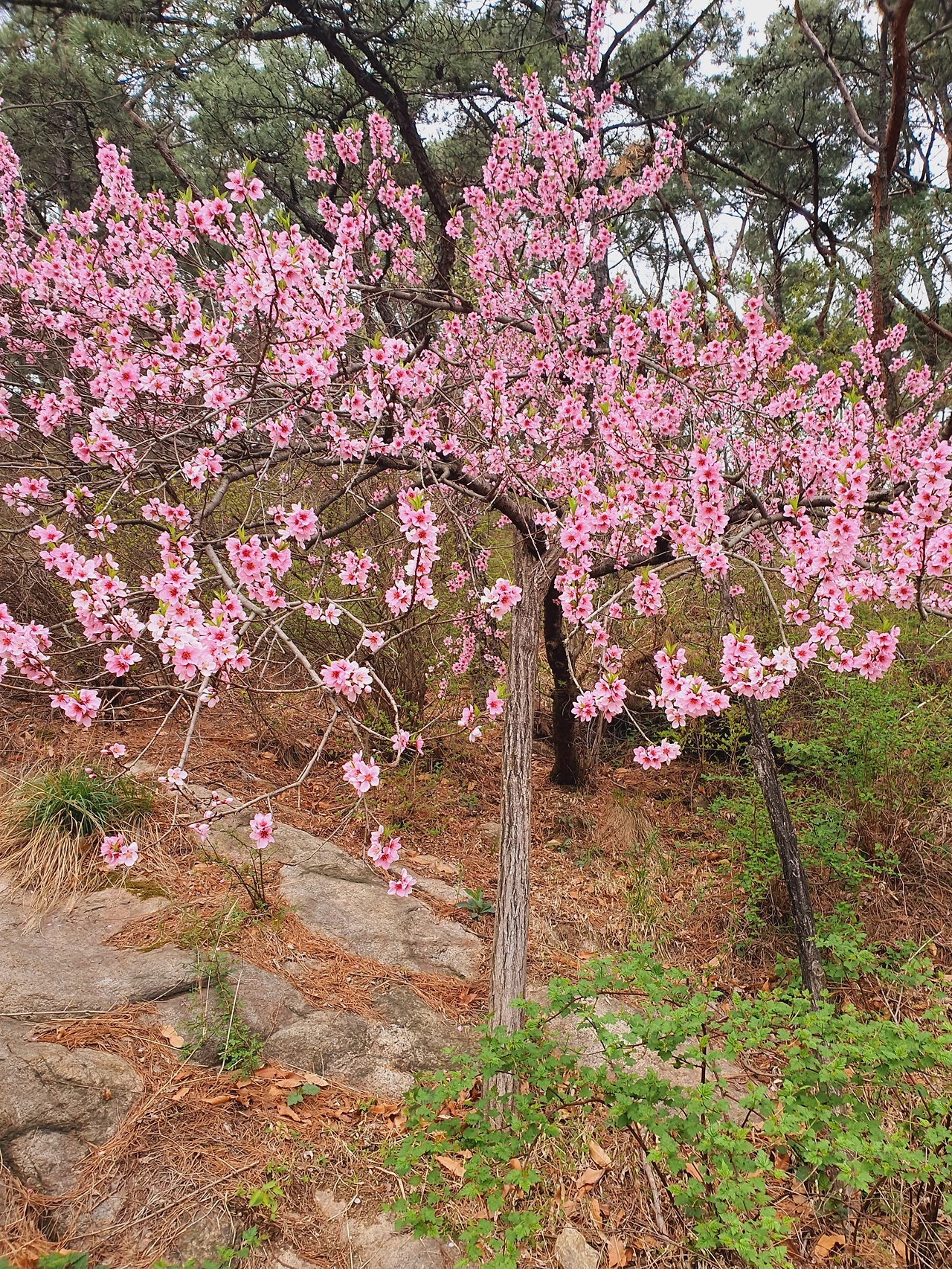 여느꽃보다도 어여쁜 색으로 자신의 존재를 뽑내는 개복숭아꽃. 복사꽃아래 도원결의를 맺을만 하지 않았나 싶은 풍경이다. 한참을 복사꽃아래 머물다 요리보고 조리보며 어쩜 내가 살던 동네 사계절을 공원에서만 찾다가 아차산 둘레길에서 만난 봄이 그저 반갑기만 하다.